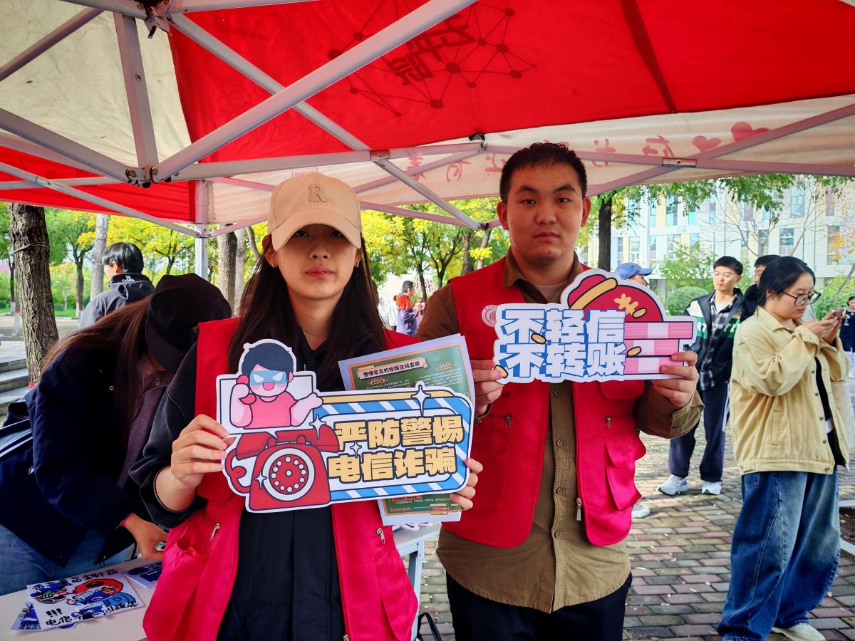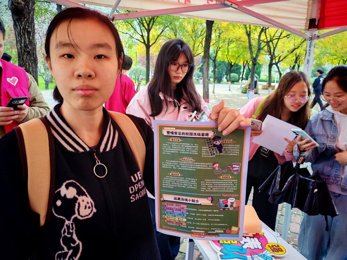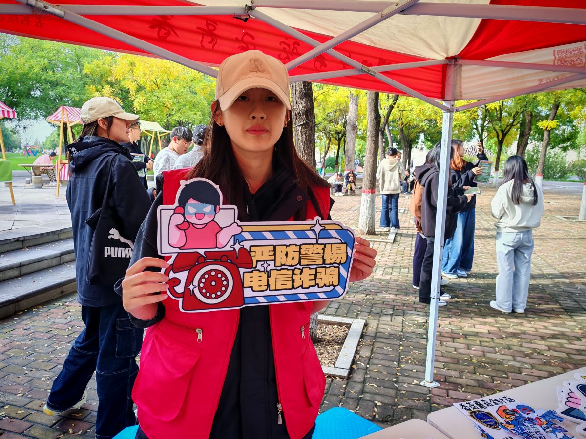 反诈志愿服务队队长介绍:“我们希望通过‘集市’这种轻松的形式,打破传统宣传的刻板印象,让同学们在探索中学习,在互动中强化记忆,真正实现‘入脑入心’,让严肃的安全知识以更青春、更活泼的方式触达内心。”