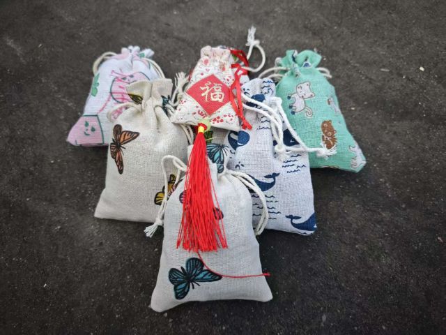 活动正式启动,服务队队员主动统筹协调,有序分发材料,一对一的细心陪伴老人。香囊制作环节,志愿者不仅帮助老人给香囊装入香料,再一起拉上香囊自带的抽绳封口,不少老人看到囊身“平安”字样时,笑着说道“这个好,图个吉利”,唤起不少老人的记忆,老人们主动参与其中,分享过往重阳节全家围坐制香囊、晚辈赠长辈枣糕的温馨场景。