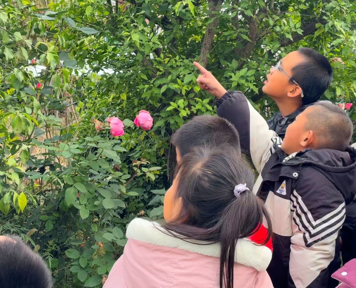活动初启,队员们带领孩子们前往校园户外,观察各类植物。此举瞬间激发了小朋友的兴趣,个个面带喜悦,积极主动地投身于植物观察之中。在他们细致观察植物的过程中,队长兰蓉巧妙引导他们关注植物的形状、颜色、纹理等特征,并分发白纸和彩笔,鼓励他们以简笔画的形式,将所观察到的植物细致地记录下来。