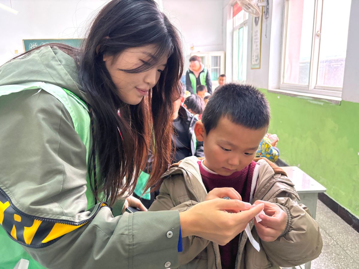 同时,当孩子们在剪裁、粘贴过程中遇到难题时,队员们会轻柔地握住他们的小手,共同完成关键步骤。对于那些拥有独特创意的孩子,队员们则给予充分的肯定和鼓励,让他们勇敢地展现自我。在整个互动中,队员们不仅教授了基础的手工技艺,更通过鼓励的话语和温馨的笑容,为孩子们注入了满满的自信。