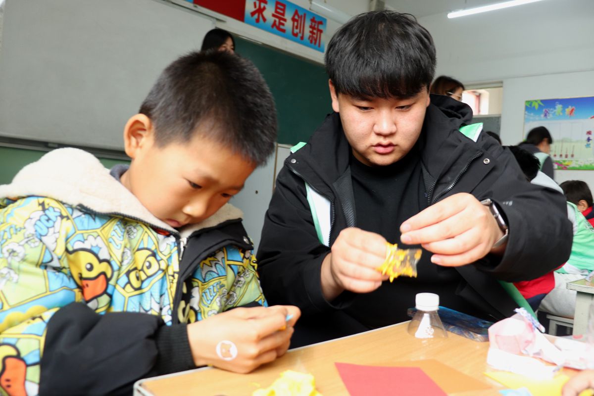队员们在一旁巡回指导,针对不同的创作类型,提供个性化的帮助。他们教导折纸的孩子们如何精准对齐边角,并为绘画的孩子们提出色彩搭配的宝贵建议。整个教室洋溢着动手实践的乐趣与浓厚的艺术氛围。