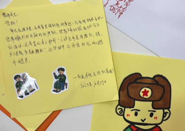 接下来,到了手工创作与写信的环节。学生们拿起画笔与彩纸,将对雷锋精神的理解融入作品:有的绘制雷锋微笑助人的画像,有的折出立体贺卡,大家写下的感谢信里字里行间都是对雷锋的敬意。同时,志愿者在现场提供材料指导,确保每一份创作都能传递真挚情感。