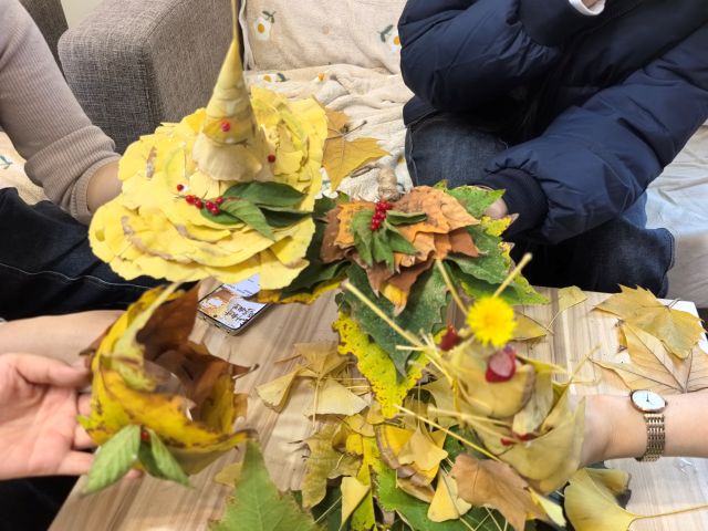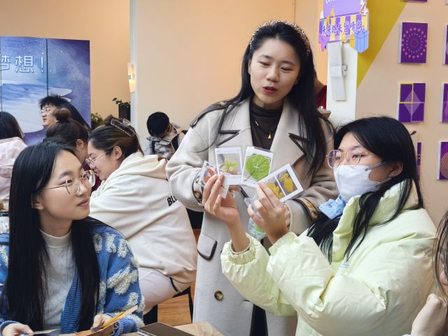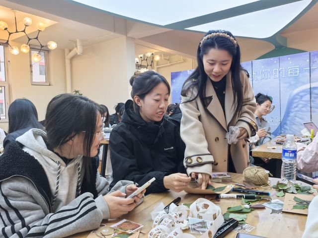 三达书院的意空间是此次活动室内创作的核心区域。创作过程中,鼓励师生在落叶上面画下自己喜欢的一些卡通人物,用卡纸将树叶组成自己喜欢的留作纪念。除了落叶收集,活动现场的“创意手作”更是人气爆棚。在这里,师生们可以发挥想象,将普通的落叶变成精美的手工艺品。桌上的胶水、剪刀、彩笔、卡纸,同时还提前准备了透明书签、贴画等样品,为大家提供创作灵感。