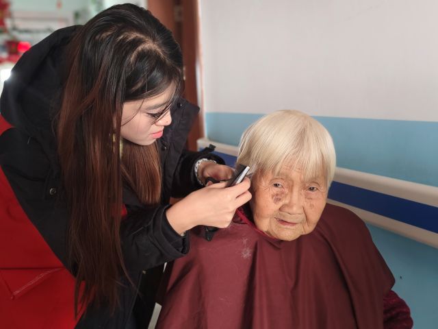 冬阳漫洒融清韵,暖意盈怀焕新颜。11月12日下午,晋中信息学院银耀拾光专项志愿服务队在指导老师徐爽的带领下,在初冬时节赴约百福养老院,开展“情暖银发第七期”主题活动,解锁“公益剪发+手作赠礼+围坐畅聊”的助老方式。为践行尊老爱老的传统美德,让老人们在料峭冬意中收获清爽与温情,志愿者们携亲手编织的串珠挂饰、彩绘石膏娃娃赴约而来,以剪刀裁去岁月尘霜,以手作承载真挚祝福,以闲谈打捞时光故事,让这个初冬因双向奔赴的美好而格外温暖。