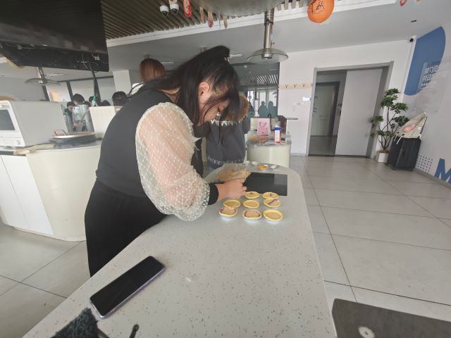 经过一番忙碌,一盘盘酥脆的饼干、一个个香甜软糯的蛋挞陆续出炉。看着自己亲手制作的成果,参与者们脸上洋溢着自豪与喜悦,纷纷拿出手机拍照留念,分享这份独特的成就感。大家互相品尝彼此的作品,交流制作心得,酥脆的饼干带着黄油的香浓,嫩滑的蛋挞裹着蛋奶的甜润,在美味的享受中拉近了距离,也收获了一份纯粹的快乐与温暖。