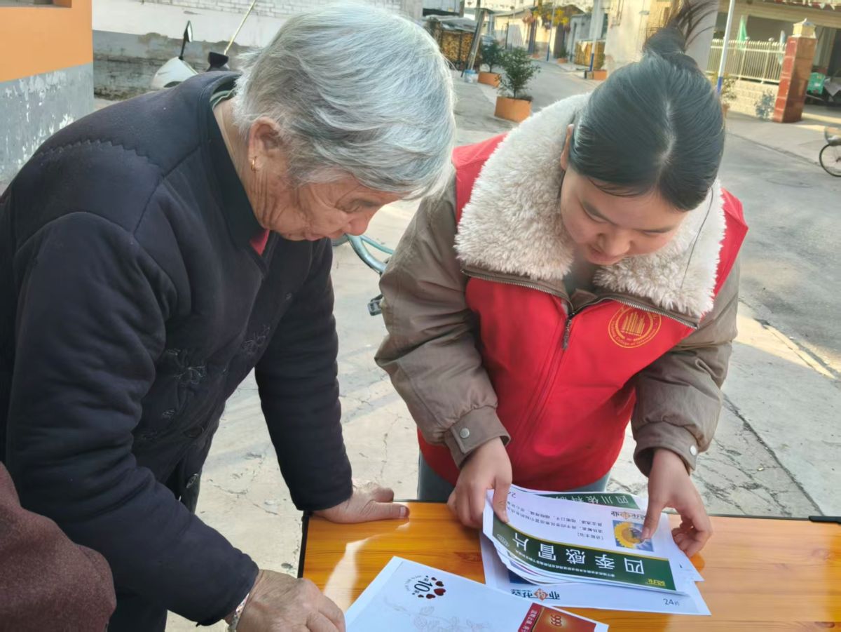一旁的“场景图文展”区域、志愿者们借助印好的图片,为老人们科普反诈知识。图片上“免费体检诱购保健品”“冒充子女借钱”等老年群体常见的诈骗场景直观呈现。志愿者们指着图片,用生动方言讲解:“大娘,要是有陌生人打电话说娃出事要打钱,千万别信,先联系村干部问问!”形象的图文与鲜活的讲解,逗得老人们乐阿不停,也让防骗知识深深扎根在大家心里。志愿者结合真实案例,一遍遍强调“不听、不信、不转账”的防骗口诀,老人们听得专注,不时点头,纷纷说道“有了你们今天一直说的这些,以后肯定不会上当了。”