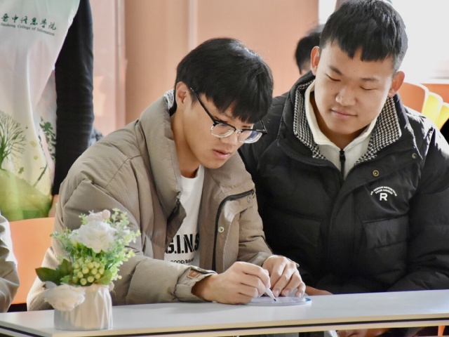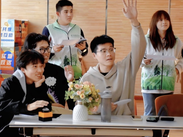 答题过程中,各团队成员在规定时间内充分讨论、分工协作,快速梳理知识点、敲定答案并书写在白板上展示。各团队限时讨论、分工协作答题,其中一组表现亮眼:队长统筹节奏,队员分攻政策解读与产业核对,当遇到“乡村旅游产业融合发展模式”这一模糊知识点时,五人迅速围拢展开热烈探讨,在短时间内形成统一思路并敲定答案。整个过程中,他们高效的分工、精准的知识调用与流畅的协作配合,充分展现了扎实的乡村振兴专业知识储备与良好的团队协作精神。