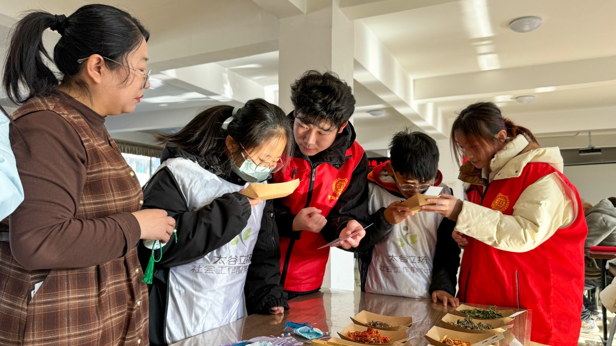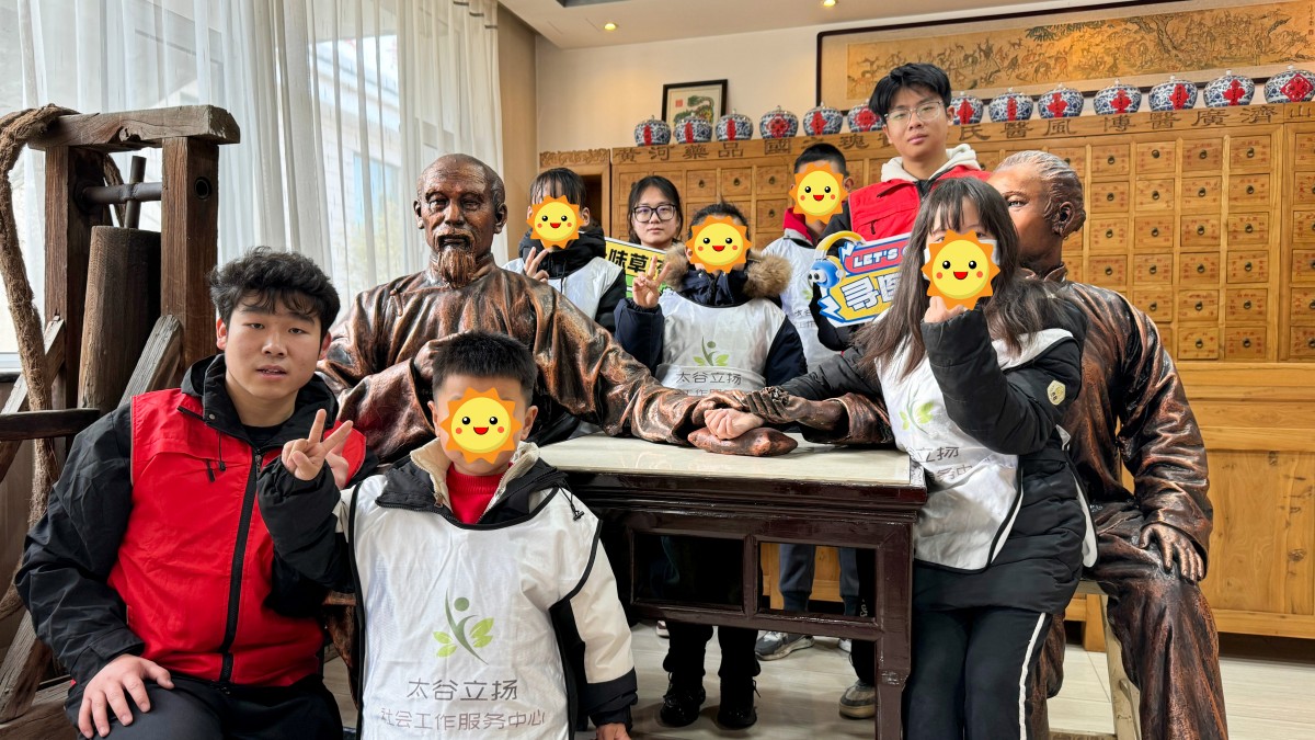 “姐姐,这个像小星星的是什么呀?”“我知道!把脉的手要这样放!”……11月23日上午,山西中医药博物馆里飘散着草叶清香,也回荡着孩子们清脆的欢声笑语。智能工程学院“法育未来”专项志愿服务队带领着一群可爱的“小布谷”们——事实无人抚养儿童,开启了一场身临其境的中医药启蒙探险。孩子们在志愿者的陪伴下,以“望闻问切”为主线,通过四重关卡解锁中医药文化的神秘面纱,在欢声笑语中完成了一场沉浸式传统文化体验。