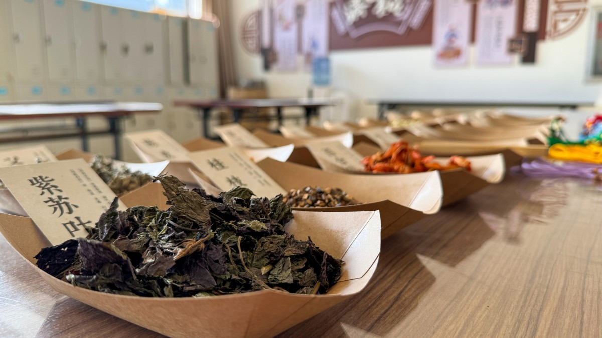 “哇,这个是薄荷的清凉香味!”“咦,这股刺鼻的气味是什么药材呢?”在“闻药识材”环节,孩子们轻轻闭上双眼,用心嗅闻不同药材散发的独特气息,踊跃猜测它们的名称与功效。未等药香在鼻尖散去,新的手作挑战已悄然开启。在沁人心脾的草本芬芳中,大家将丁香、艾叶、藿香等药材仔细装入布袋,一针一线间,一个个精巧别致的香囊渐渐成形。“我要把香囊挂在书包上,驱蚊又提神!”盈盈药香间,进度条悄然跃至50%,中医药的种子,也在一次次俯身轻嗅、一针一线中悄然扎根。