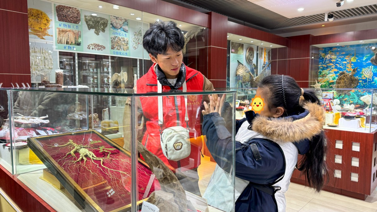 一走进博物馆,孩子们瞬间被琳琅满目的中药标本吸引。在志愿者引导下,他们仔细观察枸杞“红如宝石”的色泽、陈皮“源自橘皮”的形态,学习通过“望”判断药材品质在药丸制作区,志愿者们首先讲解“色泽均匀、大小一致、无杂质”的成药标准。随后,孩子们亲手将药粉与粘合剂混合、揉团、分粒,个个屏息凝神,反复调整药丸的形状与大小,干得有模有样。“原来从认药到做丸,都离不开‘仔细看’!”当一颗颗匀称的小药丸摆在面前,孩子们成就感满满。中医药世界的大门,正是在这“望”与“做”的结合中,缓缓打开。