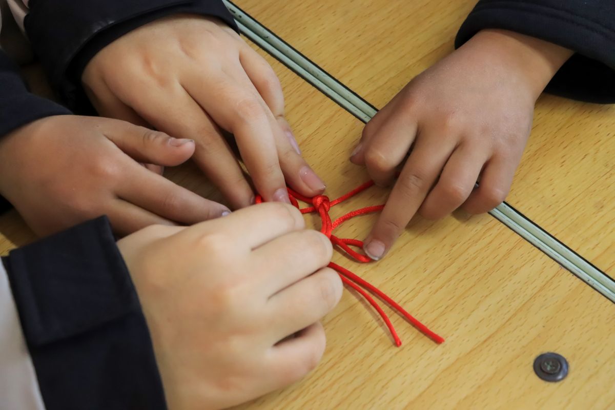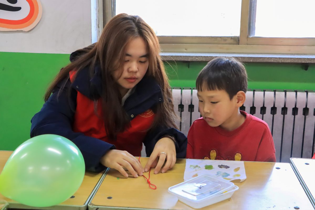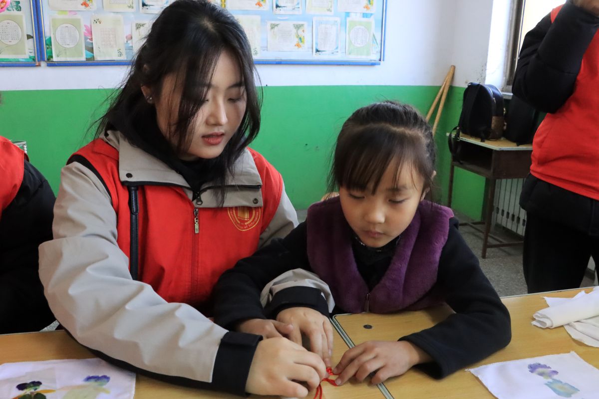 中国结编织环节中,志愿者通过生动有趣的图片展示,引导孩子们快速识别不同种类的中国结。在动手环节,志愿者们穿梭在孩子中间,一遍遍示范穿绳、打结的技巧,耐心纠正动作,轻声鼓励。“你看我做得对吗?”面对孩子们的询问,志愿者总是报以温暖的肯定。当一个个精巧的中国结在孩子们手中诞生,志愿者们眼中也闪烁着欣慰的光芒——这不仅是一件手工作品,更是文化情感的传递。