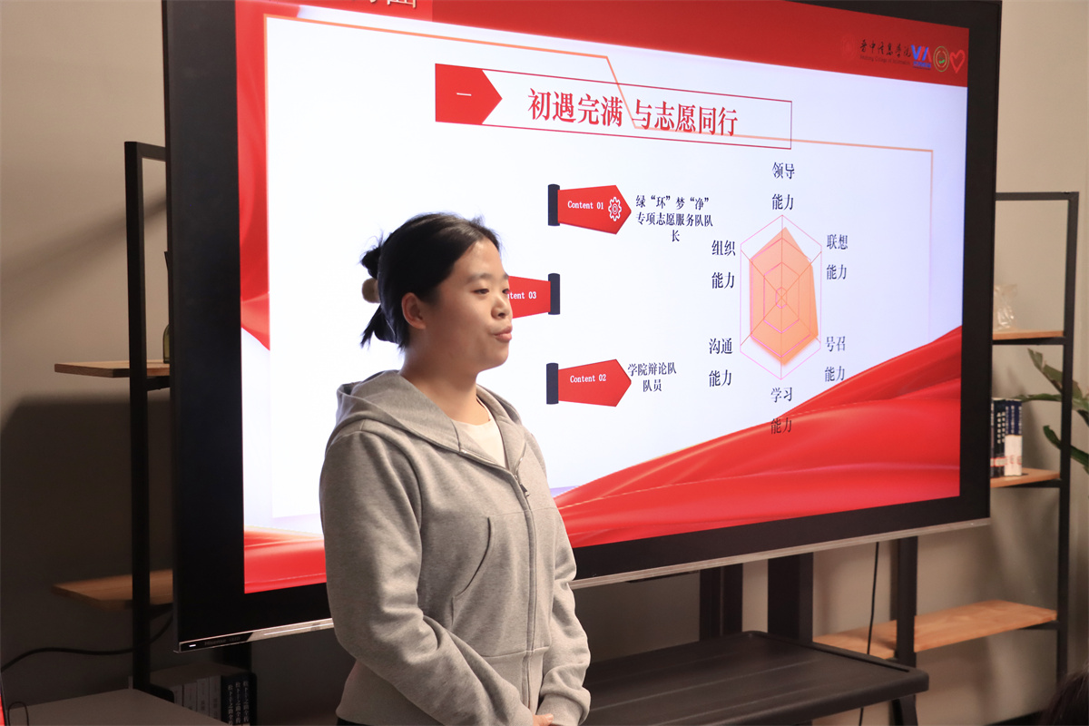 “我原本对大学生活有些迷茫,但听到美茹学姐讲述她如何从初入校园时的‘遇事躲闪’,到后来勇敢组织活动、甚至带队参赛的蜕变,真的很受触动。她分享的在志愿服务中寻找专业与实践结合点的经历,让我开始思考自己未来的可能性,觉得‘完满教育’不再是抽象的概念,而是可以真实去体验的成长路径。”