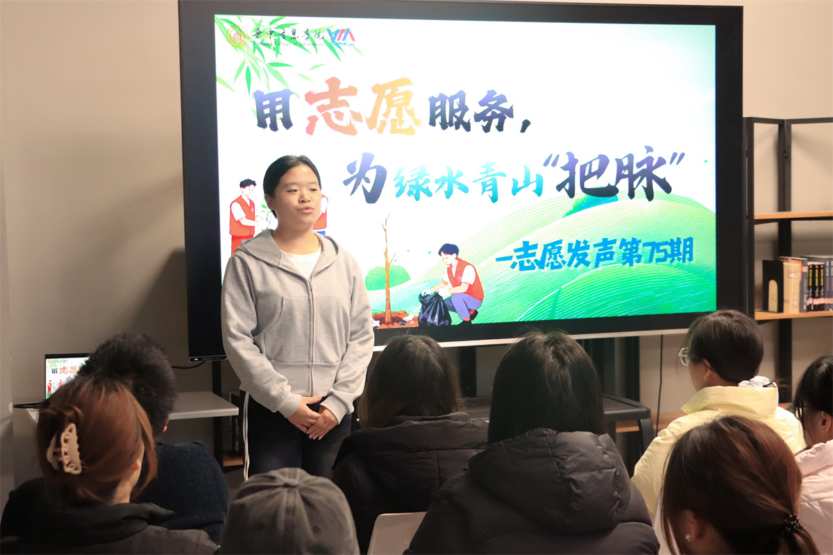 志愿初心点燃生态守护,青春力量奔赴绿水青山。11月28日,青年志愿者联合会志愿者培训中心于上河书院213自如·完满超级空间举办第75期志愿发声:用志愿服务,为绿水青山“把脉”。本次志愿发声特别邀请到大健康学院王美茹担任主讲人,一同走进她的志愿征程,倾听生态守护路上的坚守与热爱,感受志愿服务为绿水青山注入的鲜活力量。