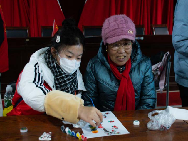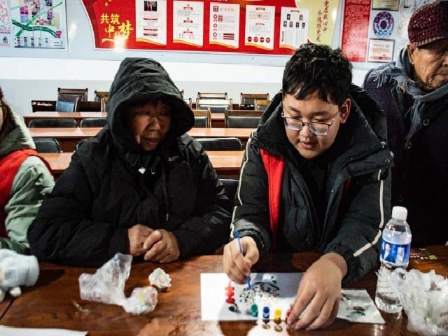 创作现场暖意融融,老人们围坐一堂,或分享创意灵感,或帮忙调色补色,时而低声切磋创作技巧,时而为彼此的作品拍手叫好。欢声笑语回荡在院落里,邻里间的温情在指尖流转、在互动中升温。志愿者们耐心细致地答疑解惑、提供协助,用蓬勃的青春活力感染着每一位老人,让老人们在动手实践中真切收获艺术创作的乐趣与成就感,更在互帮互助间体会到邻里和睦的脉脉温情。