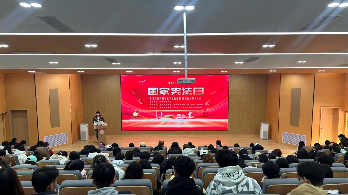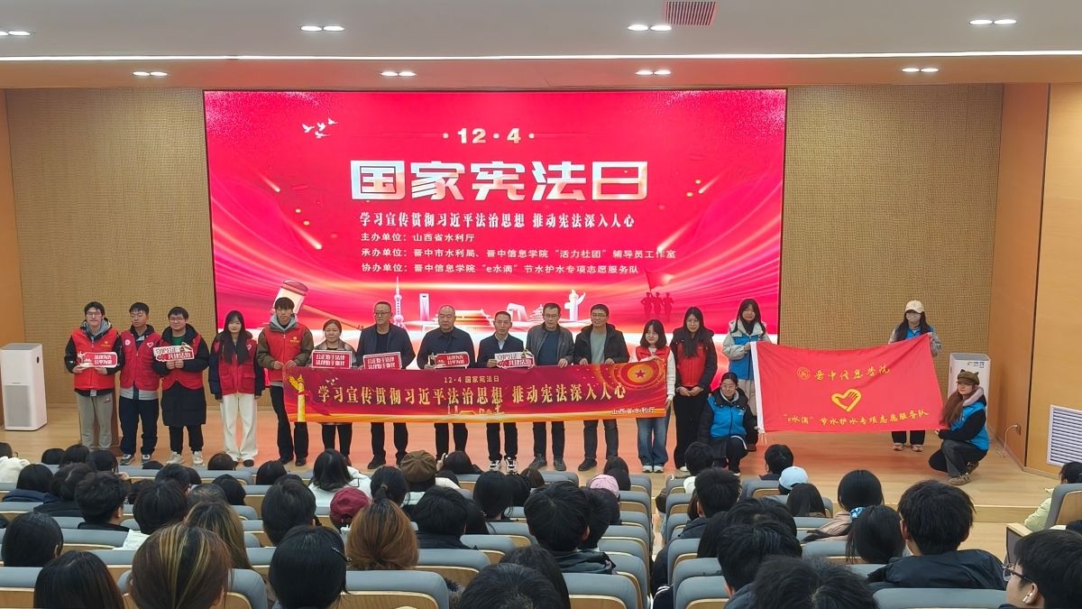 正值12・4国家宪法日,12月5日下午,一场以“学习宣传贯彻习近平法治思想推动宪法正值深入人心——水利领域法治建设专题宣传”为主题的活动在山西省晋中市晋中信息学院成功举办。此次活动由山西省水利厅主办,晋中市水利局、晋中信息学院“活力社团”辅导员工作室共同承办,晋中信息学院“e水滴”节水护水专项志愿服务队协办,晋中市水利局相关领导及工作人员孟锡政、翟忠庆等与晋中信息学院师生代表、“e水滴”志愿服务队成员齐聚一堂,共话水利法治建设,共推节水护水实践。