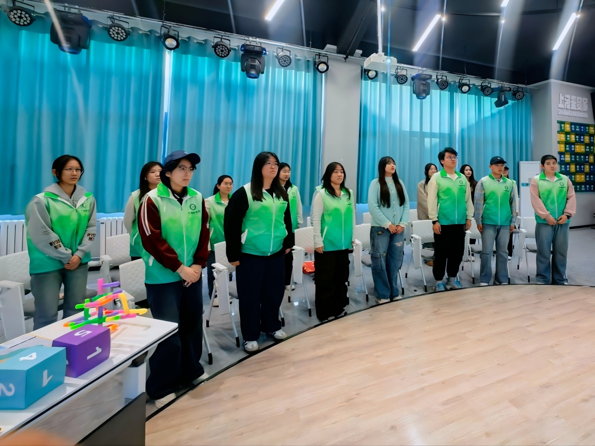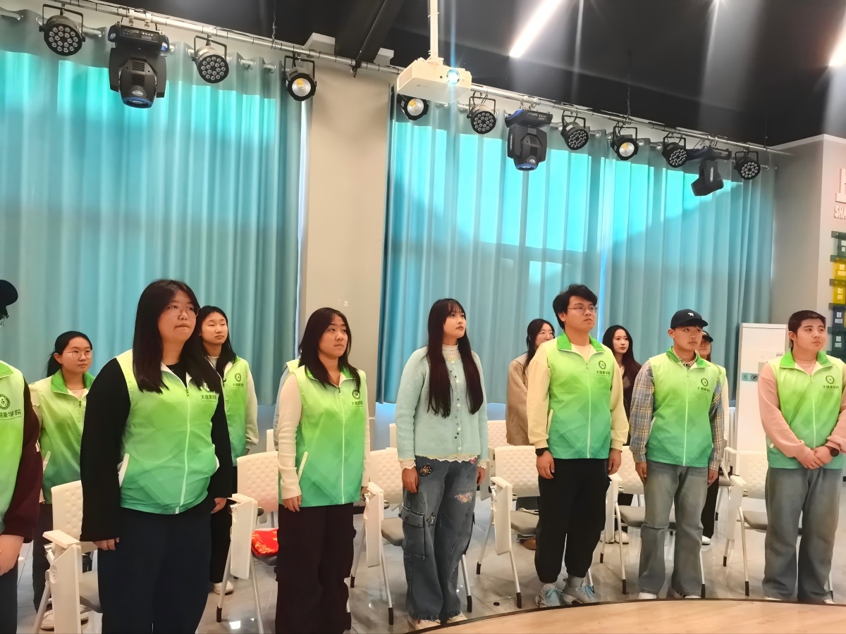 授旗仪式结束后,志愿者们身着统一志愿马甲,精神抖擞地跟随着悠扬的伴奏,深情地唱响《志愿者之歌》。嘹亮的歌声响彻现场,传递着志愿者们对少年儿童的关爱、对志愿服务的坚守,也展现了当代青年勇于担当、不负韶华的精神风貌。