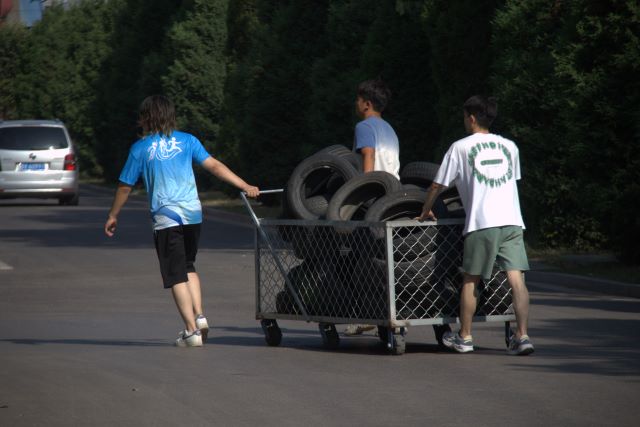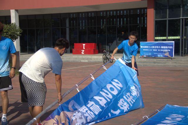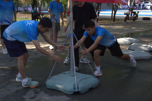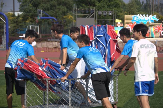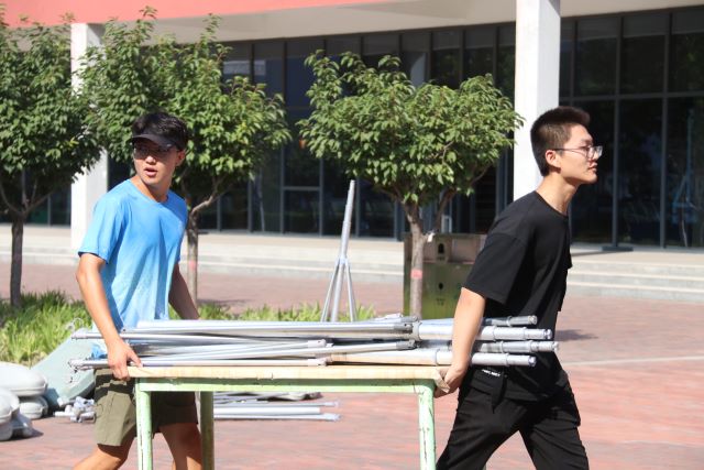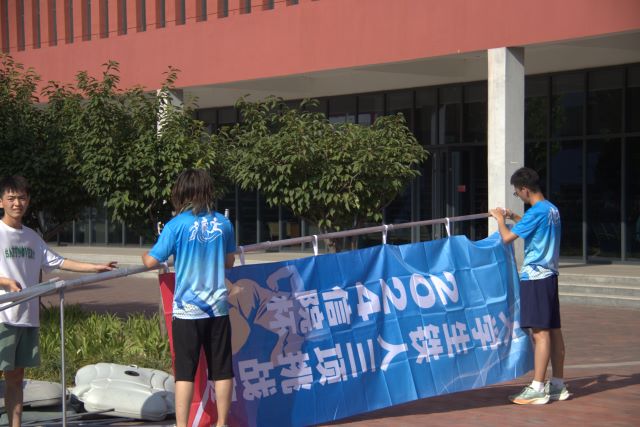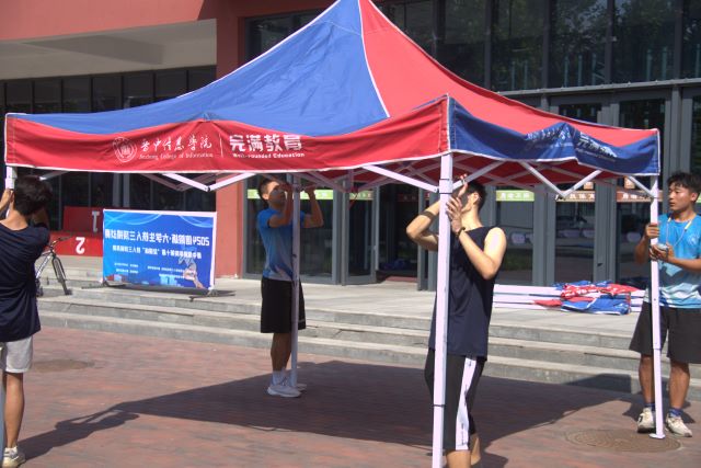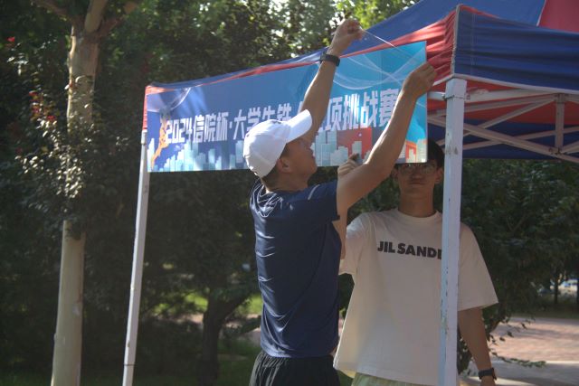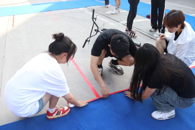 场外“最可爱的人”——是我们的幕后工作者。酷热烈日下,他们进行着紧张的筹备工作,一刻不停地奔波着。场地布置的同学们无畏炎炎烈日的侵袭,在偌大的赛场中测量、划线、搭建,双手因劳累而微微颤抖,却始终紧握着工作的“舵轮”。骄阳炙烤,拍摄宣传片的小伙伴们正全神贯注地投入工作,在酷热中扛着沉重的相机,手指灵活地调整着焦距和光圈,力求捕捉到精彩瞬间,他们的额头和鼻尖被细密的汗珠所覆盖,变换姿势寻找最佳角度,以坚韧执着彰显对工作的热爱与担当。