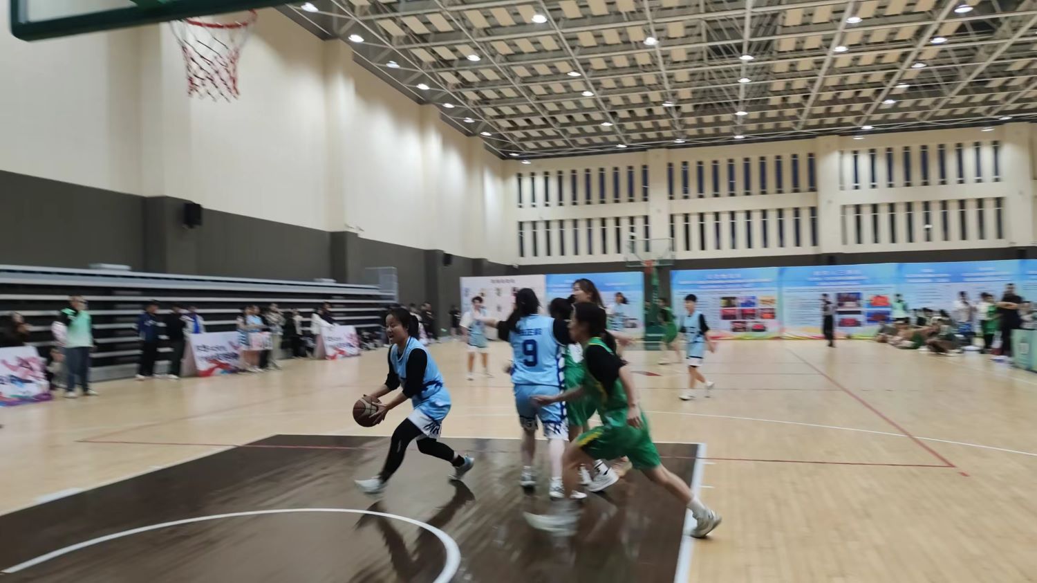 作为前锋的9号球员张芷韵也展现出了非凡的实力,她在赛场上,灵活穿梭于对手之间,寻找着每一次进攻的机会。在一次精准的投篮中,她成功将球送入篮筐,进一步扩大了队伍的比分优势。