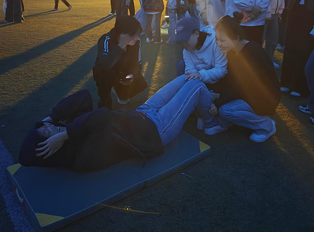 仰卧起坐最考验大家的腹部力量,仰卧起坐是一种非常有效的锻炼方式,能够增强腹部肌肉力量,提高身体代谢水平,有助于控制体重和改善身体健康。在规定的时间内,让大家将自己的力量全爆发出来,这真是一场酣畅淋漓的训练,激发大家对体育运动的热爱。