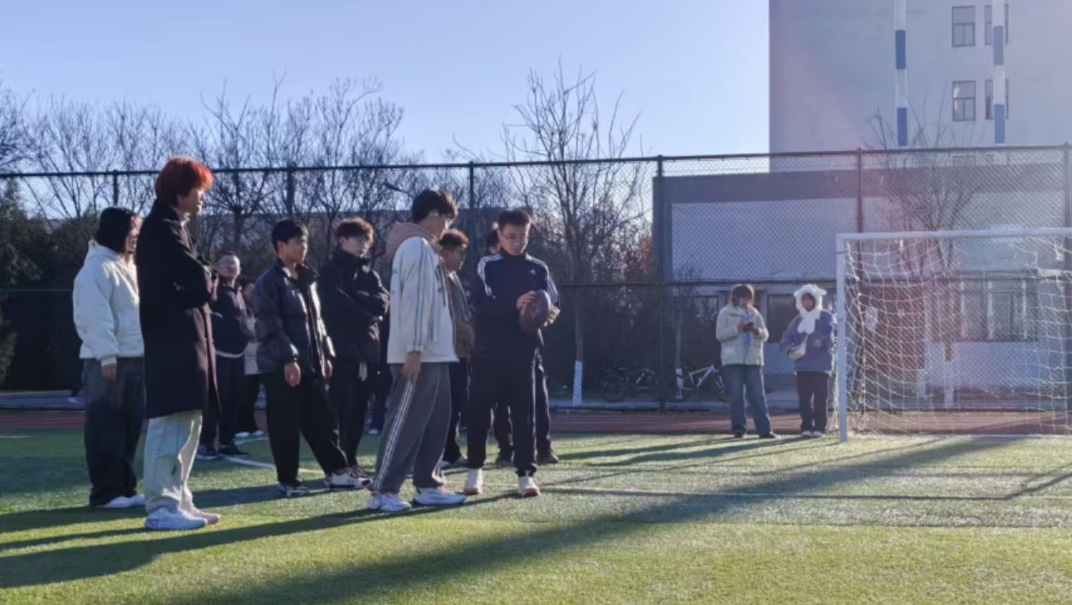 活动在充满创意的W型跑步热身中拉开帷幕。同学们在教练的指挥下,迈着轻快而矫健的步伐,有序地进行着热身活动,仿佛在绿茵场上编织着青春的律动序曲,为即将开启的橄榄球之旅充分预热。