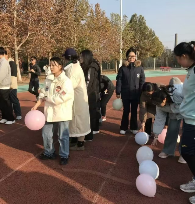初冬的脚步悄然而至,带来一种宁静而温柔的氛围,然而此刻,一场充满活力与欢乐的体育趣味活动在第二运动场激情上演。本次活动创意满满,设有踩气球、跳大绳、背对背、旋风跑4个子游戏,活动现场气氛热烈,呐喊声、欢笑声此起彼伏,吸引了众多同学踊跃参与。同学们在赛场上全力拼搏,展现出我校同学团结协作、昂扬向上的精神风貌,为校园生活增添了一抹绚丽的色彩。