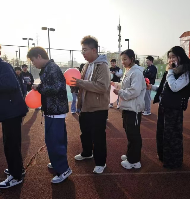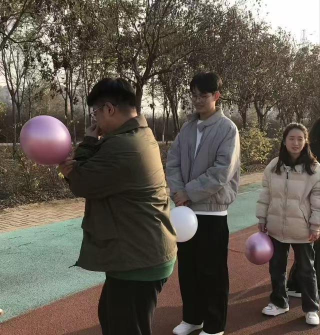 来到了我们考验团队协作能力的背对背。活动伊始,组织者为每一位参与者详细讲解了游戏规则:六人一组,背对背站立,中间夹住一个气球,在规定的时间内走完指定路线且不使气球掉落或破裂,用时最短的队伍获胜。随着一声哨响,比赛正式开始。赛场上,选手们或小心翼翼,或大步流星,气球在他们的努力下左右摇摆,现场观众的笑声和加油声此起彼伏。此次背对背夹爆气球活动不仅为参与者带来了欢乐,还增进了彼此之间的友谊和协作精神。