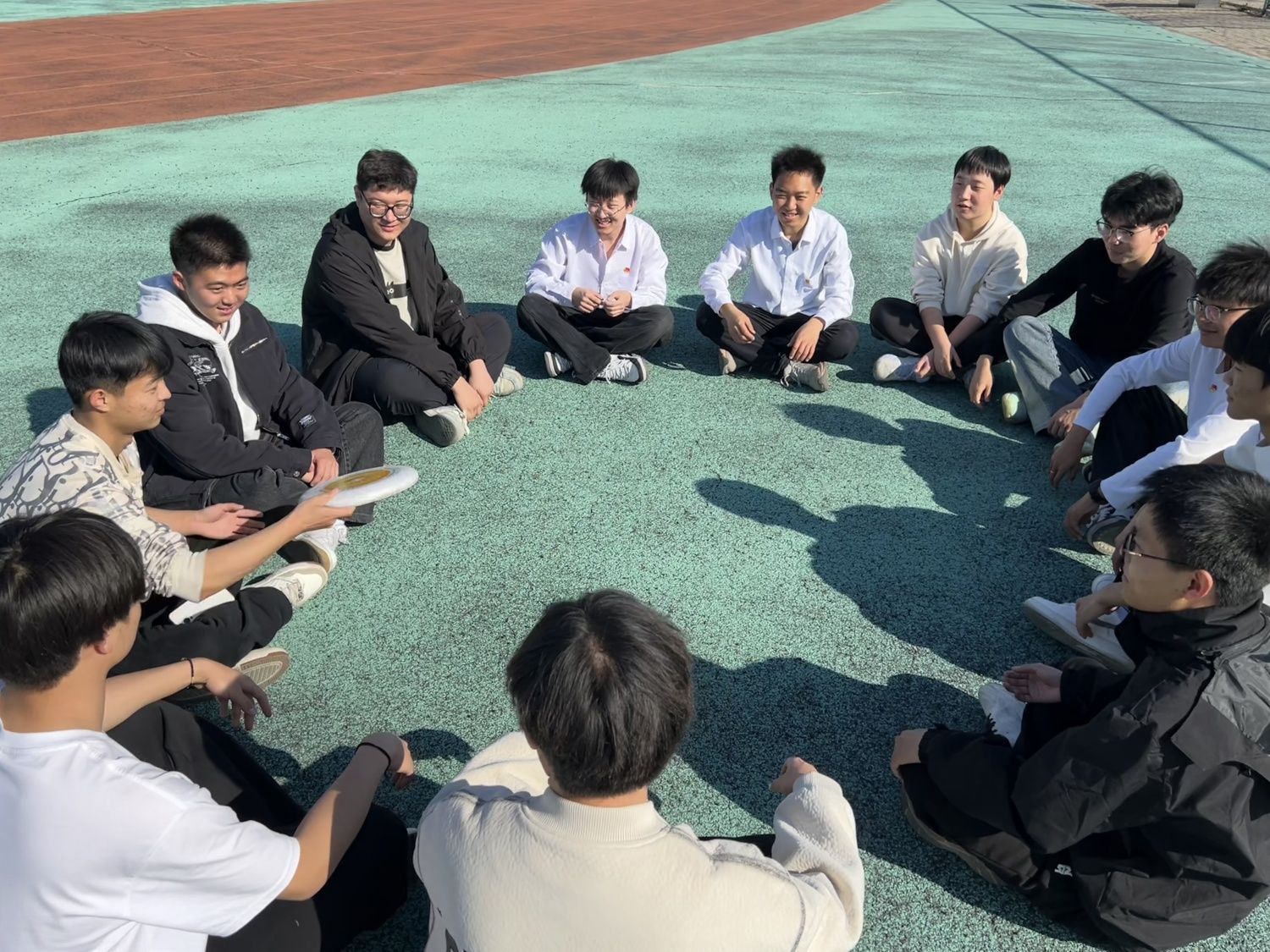 在紧张刺激的运动项目之后,“故事接龙”为活动增添了一抹轻松与创意。同学们围坐一圈,用飞盘传递故事。接到飞盘的人需接着上一个人的故事继续讲述,发挥想象力,创造有趣的情节。飞盘在空中传递,故事在笑声中延续,参与者们脑洞大开,共同编织了一个个充满趣味的春日故事。