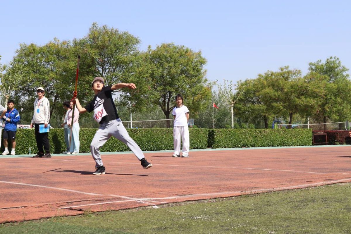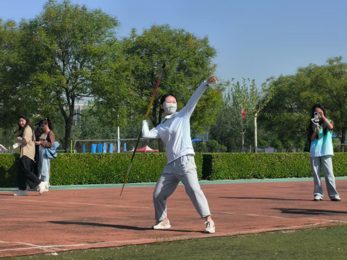 教职工运动会的热烈氛围在欢呼声中蒸腾。田径赛场上,平日里温文尔雅的老师们展现出惊人的爆发力。随着一声清脆的发令枪响,百米赛道上瞬间腾起飞扬的尘土。老师们摆臂有力,步伐矫健,在赛道上奋力奔跑,耳边呼啸的风声与观众的呐喊声交织,汗水模糊了视线,却浇不灭心中的斗志。跑道两侧学生的呐喊声浪此起彼伏,终点线前,老师们相继撞线,展现出不服输的拼搏风采,最终赵敬宇老师获得教工男子100米第二名。助跑、发力、投掷,标枪在空中划出一道优美的弧线。“哇!”人群中爆发出惊叹声,任毅老师获得教工女子标枪第二名,赵敬宇老师获得教工男子标枪第四名。这种不服输的精神也将激励着更多的同学们参与到运动行列中。