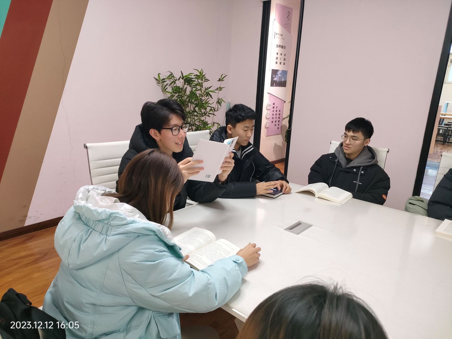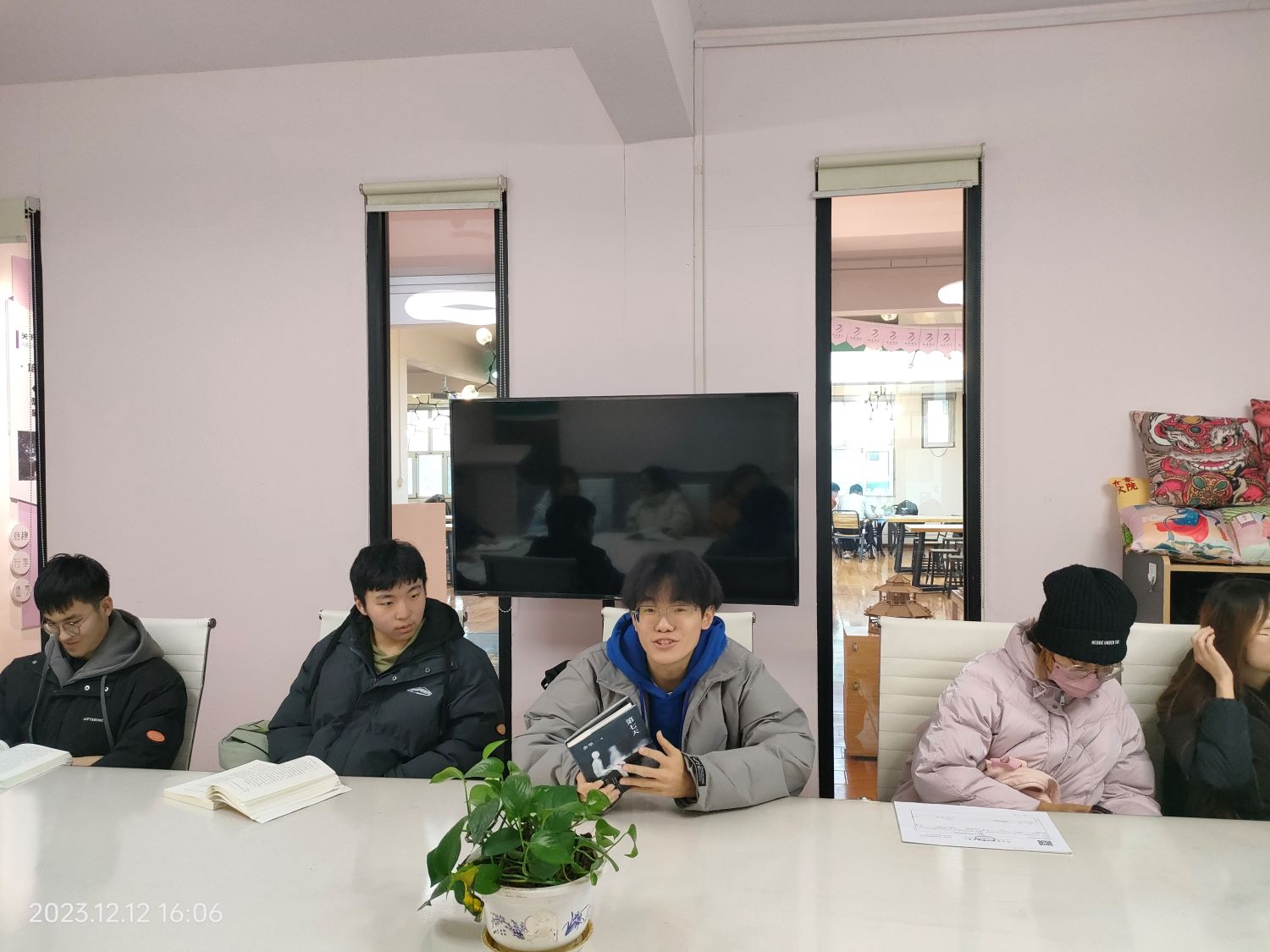 12月12日16:00,大数据学院、信息工程学院软件工程2202班在三达书院举办了“阅读驿站”读书分享会活动。活动开始前,班长乔钢向同学们讲述举办此次活动的目的和活动安排,之后由同学们依次向大家介绍他们带来的书籍,此次活动为增强同学们的积极性和参与感,采用了新的方式——抽签。每人一签,抽签抽到谁的名字就读谁带去的书籍,在阅读时间过后和大家一起分享他所读书籍中的好词好句及他读完后的感悟。同学们带来了很多书籍,如钱钟书先生的《围城》、余华的《活着》、路遥《平凡的世界》等。阅读时间,大家认真阅读,享受着文字所带来的宁静与美好。周围的同学低声讨论着他们认为不错的语句和情节,看了这一情景不禁让人想到一个成语“岁月静好”。读书会如火如荼地进行着,到了最令人期待的分享环节。首先进行分享的是班长乔钢,他分享的是《道德经》中的“祸兮福所依,福兮祸所伏,是以圣人方而不割,廉而不刿,直而不肆,光而不耀……”告诉我们做事就要大胆去做,不要瞻前顾后,太看重结果。接着是王申申分享的书中名言“如果你去试了,也许一半成功一半失败,但不试成功的几率为零。”告诉同学们要大胆尝试,实践才能出真知。本次活动让同学们感受到了文字带给我们的神奇力量,文字既是文化传播的媒介,也可以作为人与人沟通的桥梁。