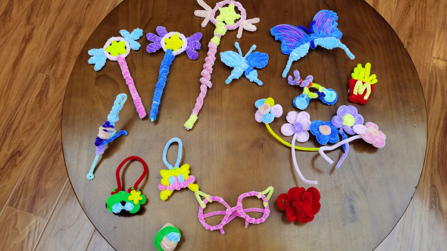 12月5日19:30,大数据学院、信息工程学院数据2303班在三达书院行空间举办了“百变扭扭棒”的DIY艺术实践活动。活动伊始,组织委员秦亚辉同学分发了所需要的材料:胶水、白胶、剪刀以及充足的扭扭棒。待秦亚辉细心讲解完规则后,大家都热情高涨、跃跃欲试,自发地随机分为了六个小组,分工协作,开始了大胆的尝试。利用所有的材料,同学们开始动手制作自己心中想要的形状,卷一卷,扭一扭,玩一玩,绕个圈,或通过自己的想象,或者在手机上搜索教程,大家都通过自己的方式开始制作自己心仪的东西。一个小时之后,大家的作品都新鲜出炉:眼镜、花束、手提包、自行车、蝴蝶、恐龙、薯条等等。一个个作品中不仅包含了同学们的智慧和天马行空,也通过这些手工制作释放了自己内心的压力,大家都静下心来,放下了手机,积极地投入其中。此次扭扭棒DIY艺术实践活动,不仅丰富了同学们业余生活,锻炼大家的手部灵活性,激发她们的创造力和想象力,也弘扬了工匠精神。