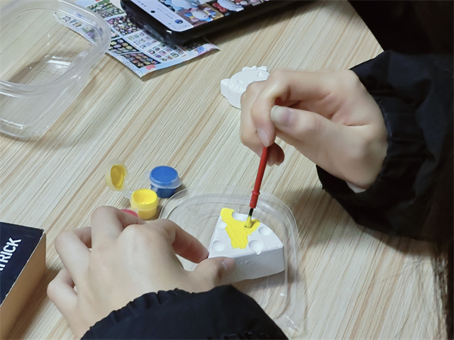 英语2318班全体同学聚集在无边书院“职”说空间B于12月6日19:30举办了“书香满园庭,指尖创童趣”的室内阅读和绘画石膏结合系列活动。活动开始,同学们迫不及待地投入到彩绘世界。一支画笔,一个石膏像,碰撞灿烂的火花。同学们大胆发挥着创意与想象力,在纯白的石膏像上用双手注入情感,用心勾勒线条,用色彩创造出一个个自己独爱的、栩栩如生的卡通形象。同学们认真绘画,一个个色彩丰富、五官灵动、栩栩如生的娃娃在手中呈现,绚丽多彩的颜料勾勒出的石膏娃娃,一个个石膏娃娃摆放在一起,共同构成了一幅幅美丽的画卷。书中的童趣世界与现实相碰撞,迸发出了五彩斑斓的石膏娃娃。而同学们参与其中,感受着大咖阅读的魅力,共同进步,一起成长。