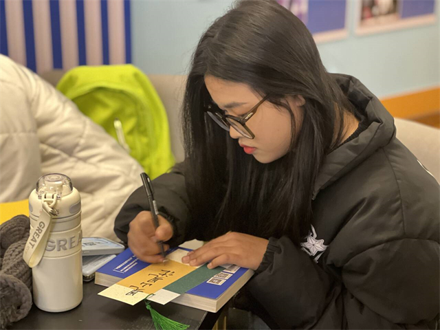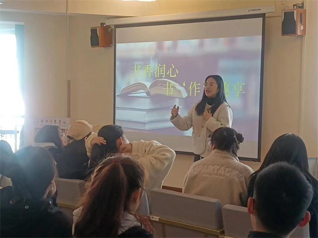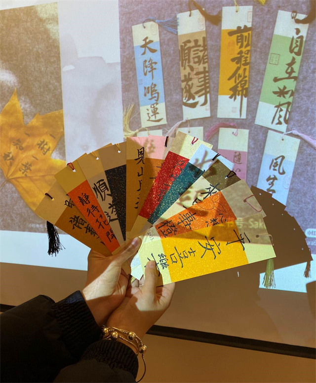 商务英语学院英语(专升本)2310班在12月6日18:00于箕城书院开展了“秉持读书心,找寻‘真’我”为主题的志愿服务活动。此次活动以大咖阅读为主体,中国书法为载体,通过制作书签的方式展开。活动主要分为两个环节,第一环节,通过PPT为同学们讲解大咖阅读的重要性,向大咖学习成为像他们一样优秀的人。第二个环节同学们自由结伴组队,活动组织者依次发放笔和书签,各组成员可根据个人想法进行动手创作,得分最高小组获胜并且均可获得礼品。这次活动不仅增强了同学们的动手能力,而且也宣传了中国传统文化,增加同学们对书法的兴趣。