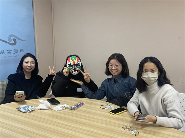 为弘扬中华民族传统文化,丰富青少年文化生活,近距离体验非遗之美,商务英语学院英语2306(专升本)班于12月6日18:00在无边书院开展了以“奏文化古韵,绘传统风华”为主题的完满团支部活动。此次活动采用了绘制脸谱的方式,让学生能更深入地了解和认识传统文化艺术。在活动开始前,组织者将同学们分为多个小组来绘制脸谱;在绘画过程中,小组成员们认真交流讨论脸谱构造、颜色的含义以及所代表的人物故事,共合作画脸谱。最后同学们展示小组成果,向大家介绍小组所绘制脸谱背后所蕴含的故事。