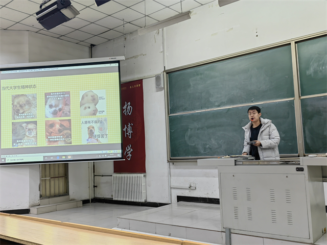 为了倡导健康的生活方式,智能工程学院2023级辅导员杜岩涛老师于12月12日18:00在博学楼203教室开展了一场名为“拒绝精神内耗,停止躺平摆烂”的辅导员说完满活动。杜岩涛老师告诉同学们,生活不可能总是一帆风顺,困难和挑战是同学们成长的阶梯。只有通过不断的努力和奋斗,才能克服困难,实现目标。选择“躺平”,只会让同学们失去前进的动力,停滞不前。同学们要拒绝“躺平”,积极奋斗。要有明确的目标,有坚定的信念,有不断努力的决心。同学们要相信,只要付出足够的努力,就一定能够实现自我的梦想。同时,同学们也要鼓励身边的人拒绝“躺平”,积极奋斗。要通过自己的行动,影响和激励他人,共同创造一个积极向上的社会氛围。
