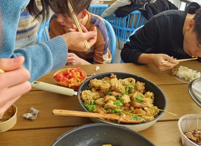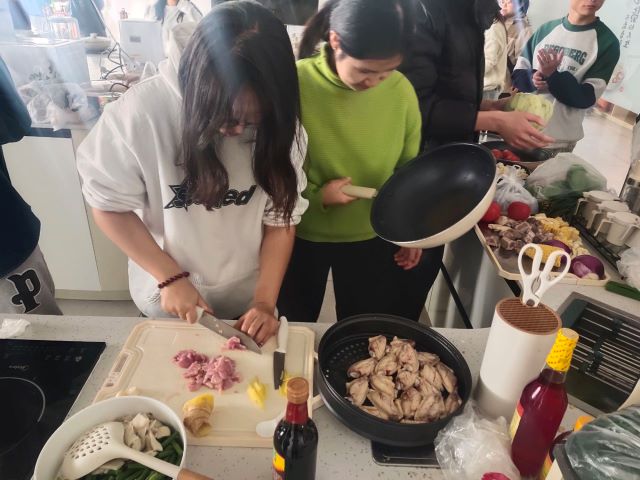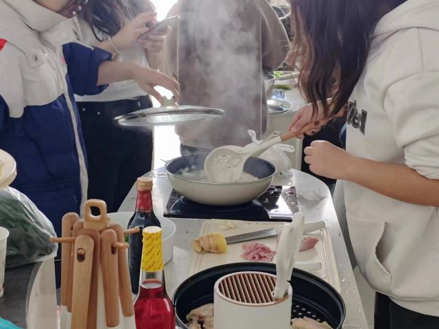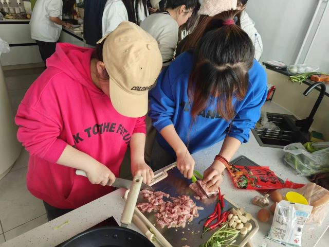 野炊烟袅袅,鼎釜正煎烹。为了锻炼同学们的组织能力和动手能力以及促进同学之间的团队合作能力,特于12月21日11:00-13:30在毣谷书院望野共享厨房举办活动。本次活动使班级成员在轻松愉快的氛围中增进彼此之间的信任和了解,通过共同做饭,学生们能够增进彼此之间的了解和友谊。在准备食材和烹饪过程中,他们需要互相协作,分享彼此的想法和经验。这种互动不仅锻炼了他们的团队合作能力,还培养了他们解决问题的能力。同时,分享美食也是促进友谊的一种方式,学生们可以在享受美食的同时,增进彼此之间的感情,更能够提高同学们对日常生生活的知识技能。