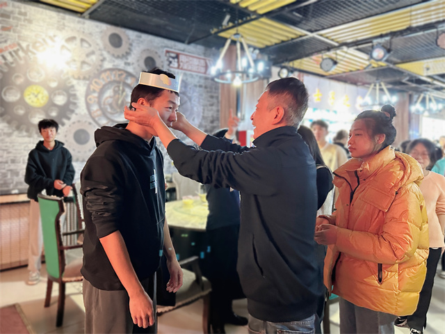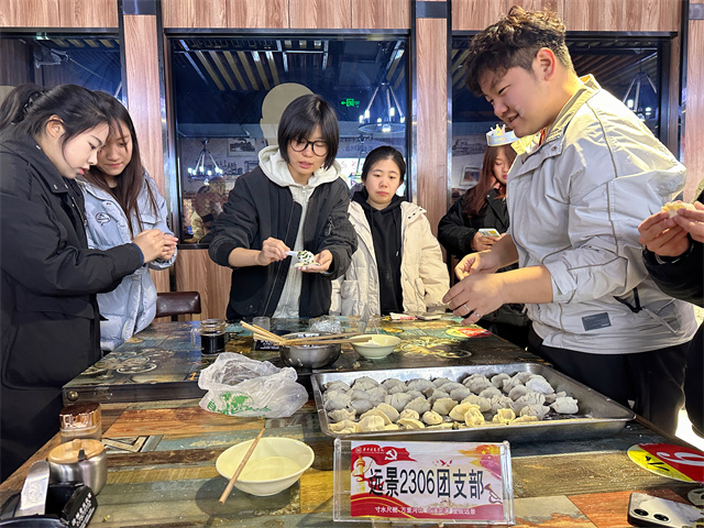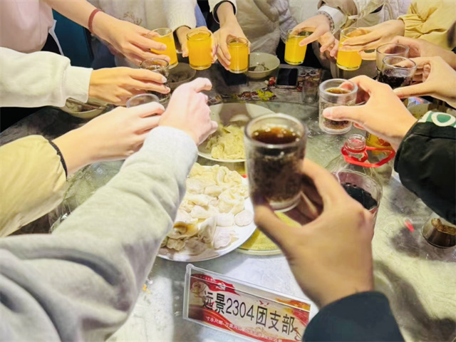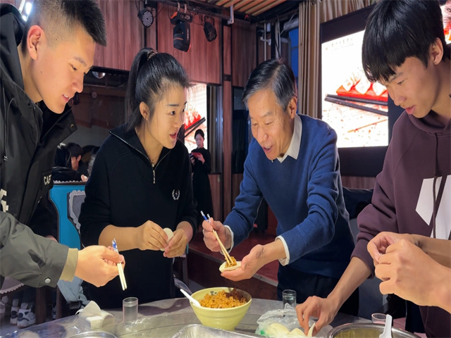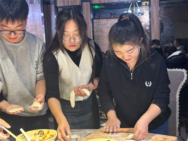 在一片欢声笑语中,热气腾腾的饺子已经被端上了餐桌,在寒冷的冬日里给师生们带来了浓浓暖意。师生围坐在一起,共同品尝自己亲手制作的美食,每一个饺子都是独特的美食作品,配上辣椒油与香醋,怎一个“香”字了得?同时还有八位寿星吃到了限定口味的“幸运饺子”,带着这份蕴含着祝福的幸运,让现场的氛围更添一份温馨。