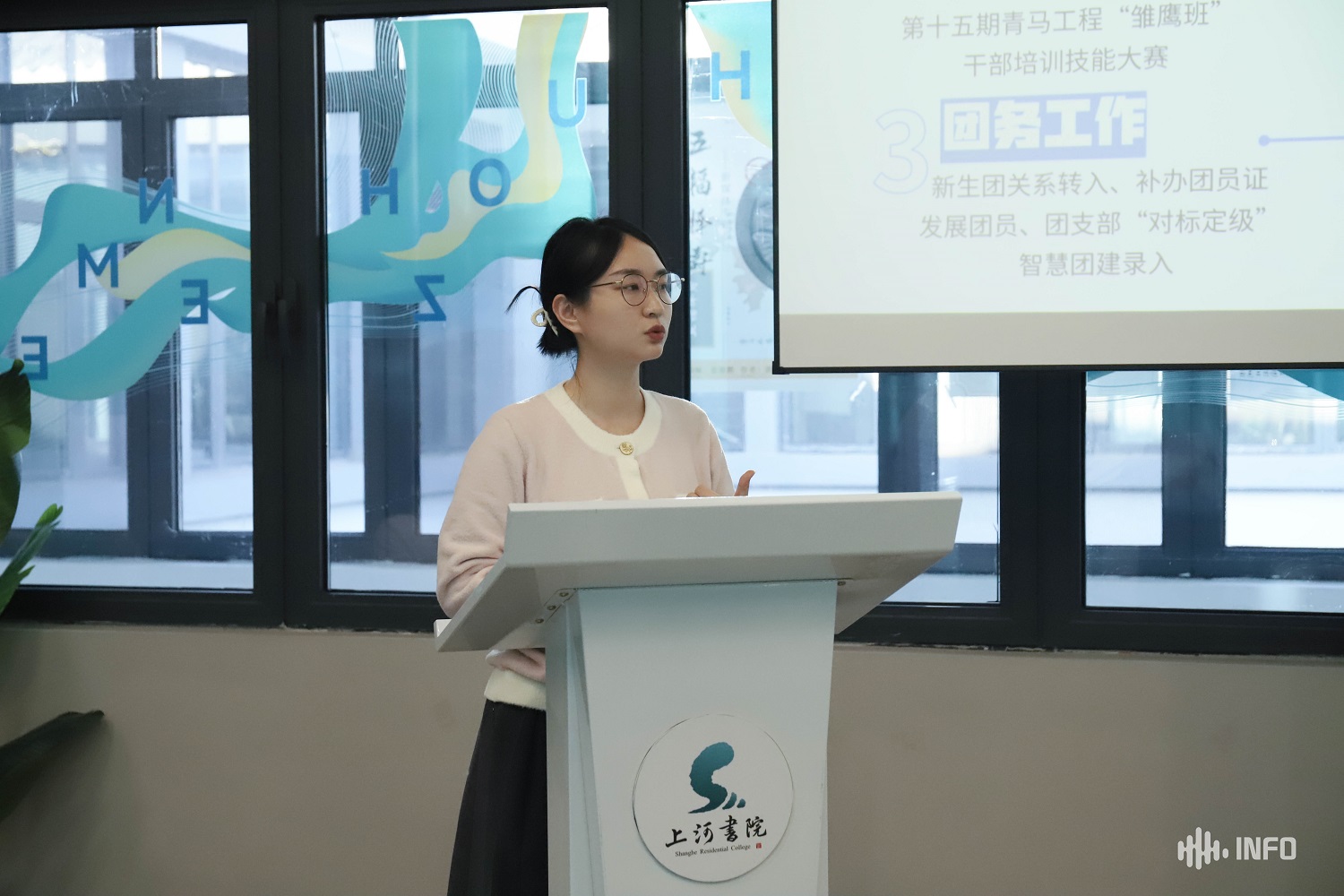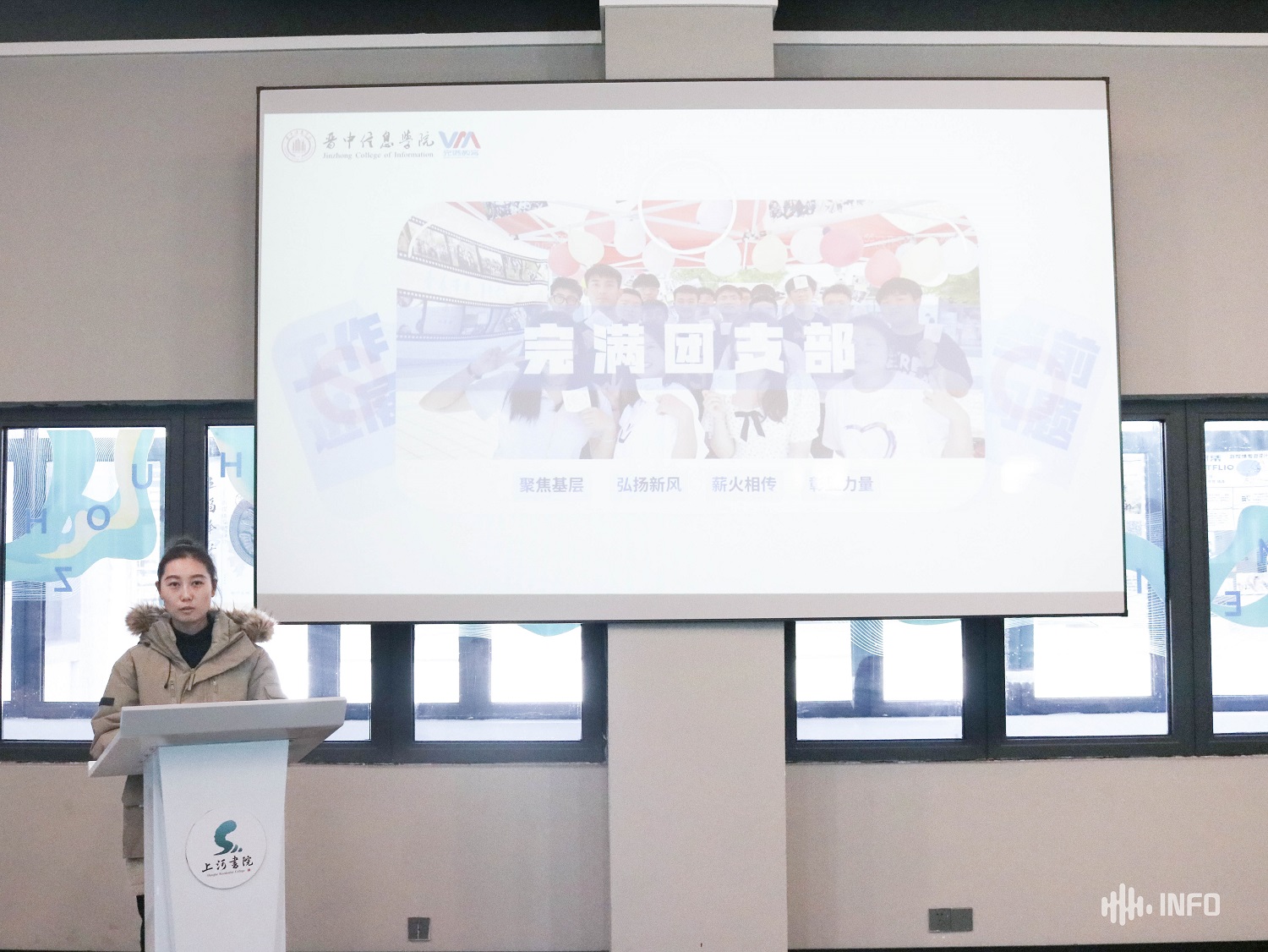王捷老师讲解学院完满团支部“13549”工作理念,本学期,开展重走“长征路”班级大PK、“跨界班团”脱口秀大会等形式多样、健康向上、格调高雅的基层活动。同时,打造全方位、立体化展示阵地,构筑完满育人新生态。