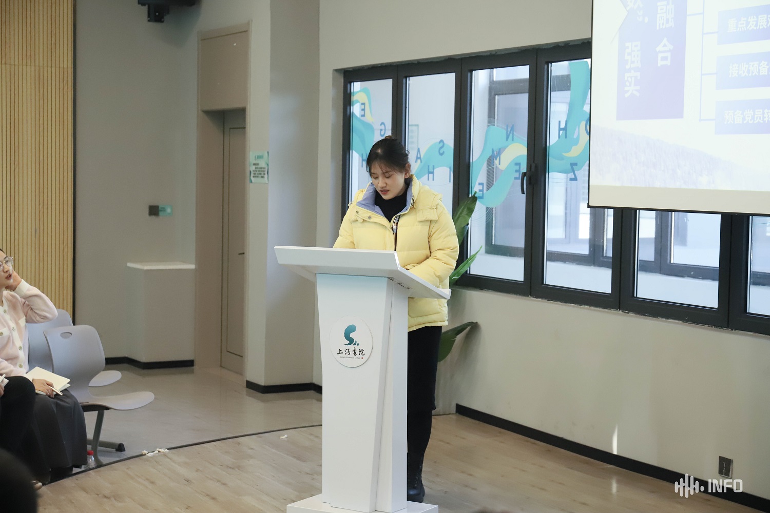 党建工作要把好固本强基“关键点”夯实基础。武文娟老师从学习质量、规范意识和创优意识三方面阐述了当前所存在的问题,并表示要抓好党建引领赋能,进一步加强学生党员教育管理,擦亮信工名片。