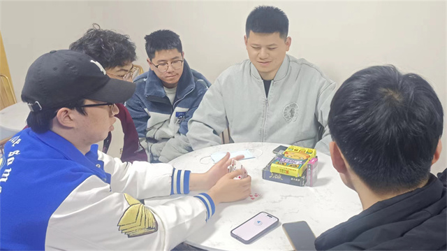 通过玩一些棋牌游戏,可以锻炼同学们的思维,启迪同学们的智慧,同时增进同学间的友谊。3月4日16:00,机器人2101班在箕城书院思维拓展室,通过狼人杀、象棋、三国杀、斗地主等经典游戏唤起同学们对桌面游戏的热爱,再次燃起激情!在跳棋场,大家个个聚精会神,紧盯棋盘。希望通过此次活动,同学们可以明白一个道理,即:“舍弃是棋牌取胜的秘诀;舍得是人生成功的智慧。有舍才有得,会舍才会得。”所以在人生道路中一定要像玩棋牌游戏一样学会舍得。