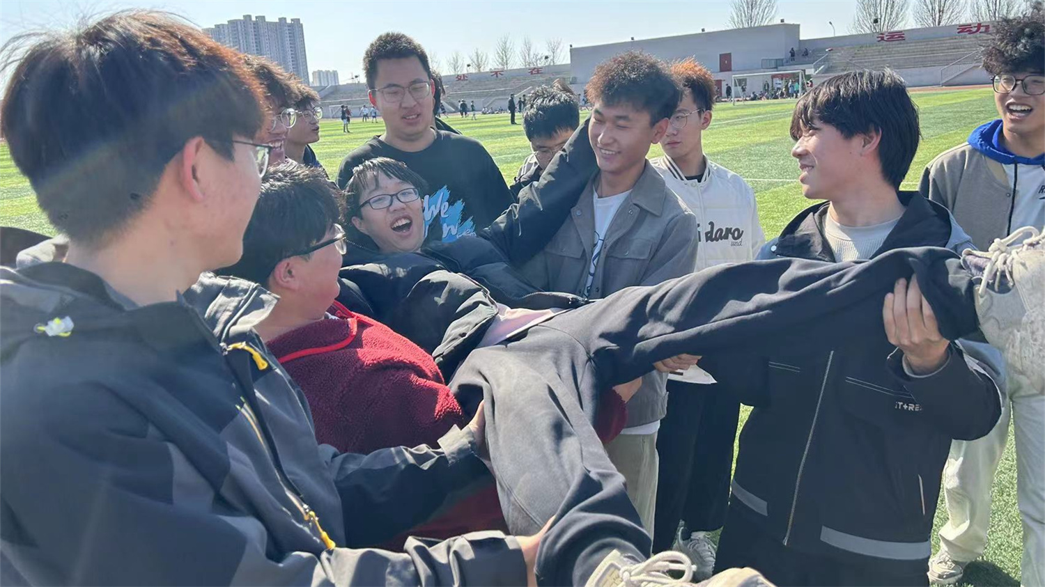 阳光洒满操场,热情洋溢在每个同学的脸上。3月20日,电气2305班在第一运动场举行了一场别开生面的趣味赛跑活动,同学们在欢声笑语中挥洒汗水,尽情享受运动带来的快乐。本次趣味赛跑活动包括绑脚跑、接力跑等多个环节,旨在增进班级凝聚力,提高同学们的团结协作能力。活动开始前,同学们积极热身,为接下来的比赛做好充分准备。这次趣味赛跑活动不仅锻炼了同学们的身体素质,更增进了班级之间的友谊和凝聚力,是一次非常有意义的活动。此次趣味赛跑活动不仅让同学们体验到了运动的快乐,更让他们深刻体会到了团结协作的重要性。在比赛中,同学们相互扶持、共同前进,展现出了班级团结一心的精神风貌。这种精神风貌不仅体现在赛场上,更将贯穿于同学们今后的学习和生活中,成为他们前进的动力和支撑。
