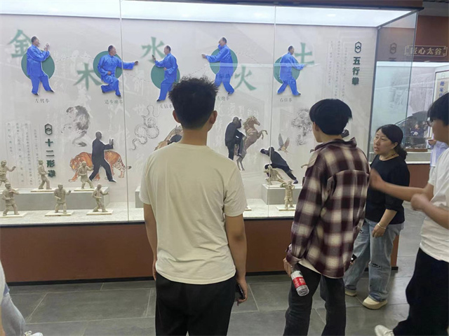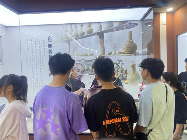 馆内展示类别名目繁多,除了介绍太谷饼的历史传承,还涉及太谷饮食、陶瓷、医药、武术、戏曲等。晋商发源地的泱泱文化波澜壮阔,令同学们赞叹,一座太谷城的内涵底蕴在此便可窥探一二。这里古朴典雅的装潢、传统手工制作工艺展示,让同学们仿佛穿越时空,置身于古老的太谷县城中。