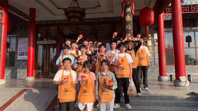 活动当天,同学们齐聚鑫炳记食府,迎来了这场别开生面的文化体验之旅。这里古朴典雅的装潢、传统手工制作工艺展示,让同学们仿佛穿越时空,置身于古老的太谷饼制作坊中。在工作人员的带领下,同学们怀着好奇与期待,踏入了鑫炳记食府。
