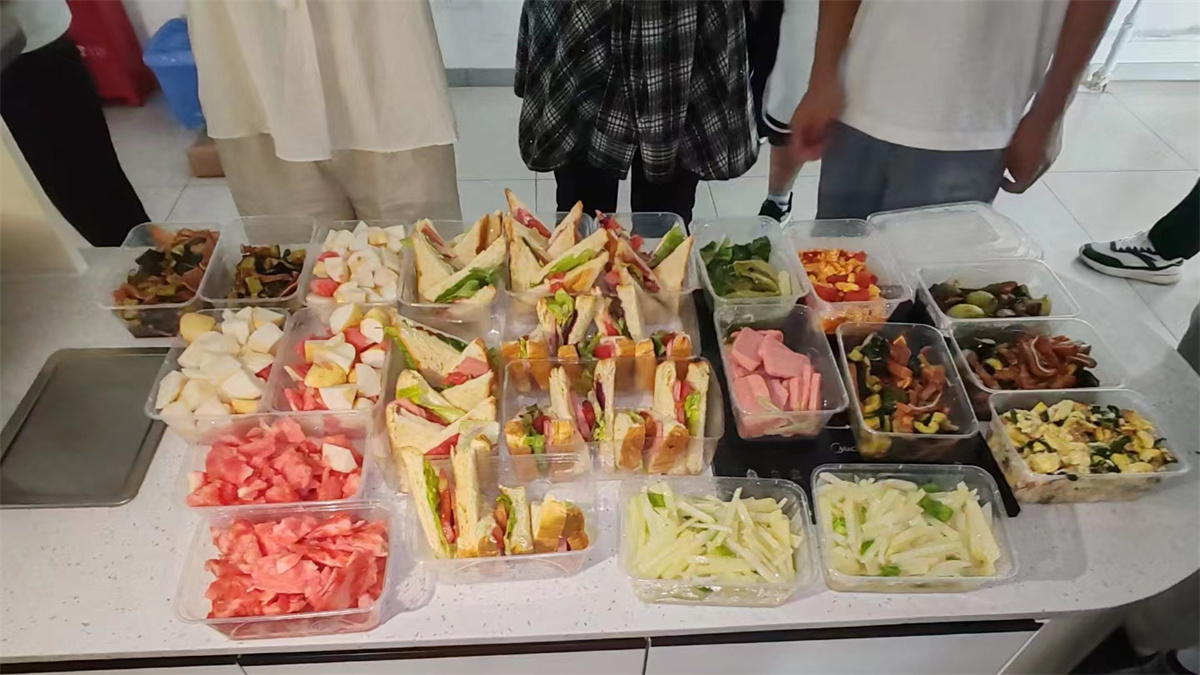 为了提高团体协作和独立生活的能力,培养同学们之间的友谊,电子2302班在5月11日17:30于毣谷书院望野·共享厨房开展以制作美食为主要形式的完满团支部活动。在同学们的协力合作下所有菜品制作完成,万众期待的分享时刻到来,菜品荤素搭配,咸淡相宜,在看到一道道美味佳肴呈现在桌上时,同学们垂涎欲滴的同时不由得都感到一股成就感和满足感,于是一个个大快朵颐,“老虎”之间抢肉吃,“山羊”负责“斩草除根”,“小鸡”则是吃三明治。制作美食让同学们增加了责任心与耐心,他们付出了努力,最后也收获到了甜美的果实。活动中同学们在摆盘、炒菜中充分发挥了各自的创造力与团队精神;在后续的打扫中学会了团队合作;在做饭过程中通过付出的努力与汗水,知道了珍惜食物。通过用心做饭,同学与同学之间的关系也越来越紧密,更加能体会到班级这个大家庭的温暖与关爱。