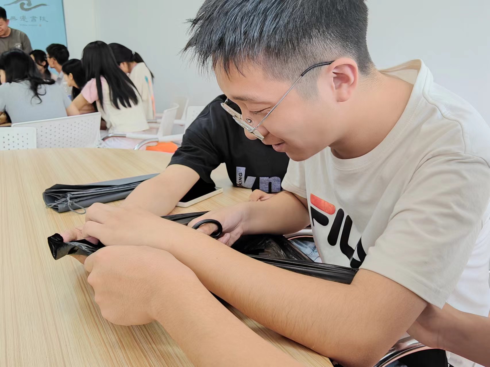活动伊始之际,班长带领同学们首先来到了无边书院“职”说空间B,对本次活动进行了简单地介绍。通过对气体压力、推力和飞行原理的探讨与实践,同学们在搭建水火箭的过程中锻炼了逻辑思维、团队协作和问题解决能力。他们的每一次调整和改进都代表着追逐梦想的坚定步伐,正如水火箭在空中翱翔一般,展现着他们对未来的渴望。