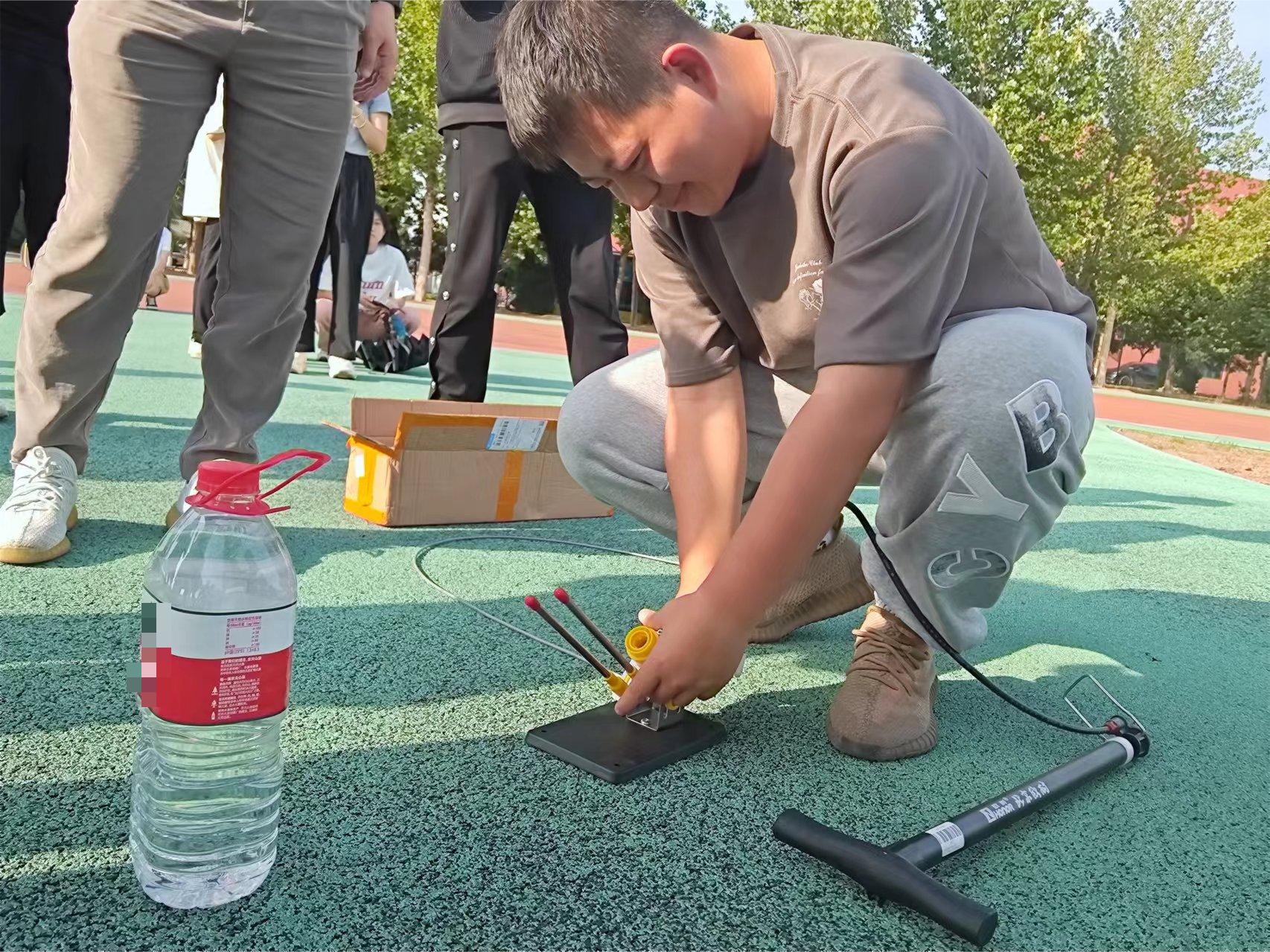 风驰电掣,火箭腾空飞驰,梦想之翼,展开在蓝天之际。追随星辰,扬帆远航,年轻的心灵,在航程中踏实成长。同学们在精心制作水火箭的过程中展现出无限的创造力和团队合作精神。每个小队都用心设计和制作出独具特色的水火箭,展现出他们独特的想象力和技术能力。有的小队的水火箭造型别致,犹如太空中的一颗流星;有的小队的设计灵感源自宇宙星云,彰显出他们对未知世界的探索和渴望。每一枚水火箭都是同学们智慧和汗水的结晶,每一次测试都是团队合作的历练和成长。