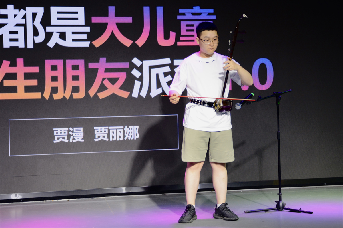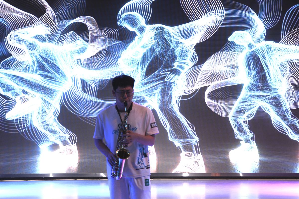 少年想努力与月亮并肩,与星辰共话巴山夜雨时,你我都是《无名的人》,唱出了每个平凡但不平庸的人,愿同学们每个人都不负童年时的自己,做自己人生的主角,奋斗出不一样,精彩的人生。街舞登场,嗨翻全场,炫酷的动作,热情的舞姿,孙鑫涛和尹振玺两位同学的街舞表演,使整个现场气氛达到了高潮。丝竹管弦余音绕梁,古今中外交相辉映。笛子与萨克斯的完美融合,以独特的音乐形式,让在场的每一位同学都能感受到不同文化背景下音乐的交流与碰撞。深情款款的独唱,赋予《I believe》全新的生命力,以饱满的情感和精准的音准,完美呈现了歌曲的主题——无论面对何种困难,只要坚持信念,就没有什么不可能。希望每一位同学未来在追求学业和生活目标的过程中,保持积极乐观,勇于面对挑战。弦声悠扬,心韵东方,一首二胡表演,为同学们展现了中国传统音乐的独特魅力,李钰清同学高超的技艺和深情的演绎迅速点燃了现场的气氛,引领同学们进入了传统音乐的美妙世界。歌舞环节的最后,由吴腾宇同学带来一场《38度6》,为同学们带来了这一场热浪中的清凉旋律,用青春的活力和热情的歌声,将夏日的热度转化为音乐的热情,让每一位在场的同学都能感受到夏日阳光下的波光粼粼。