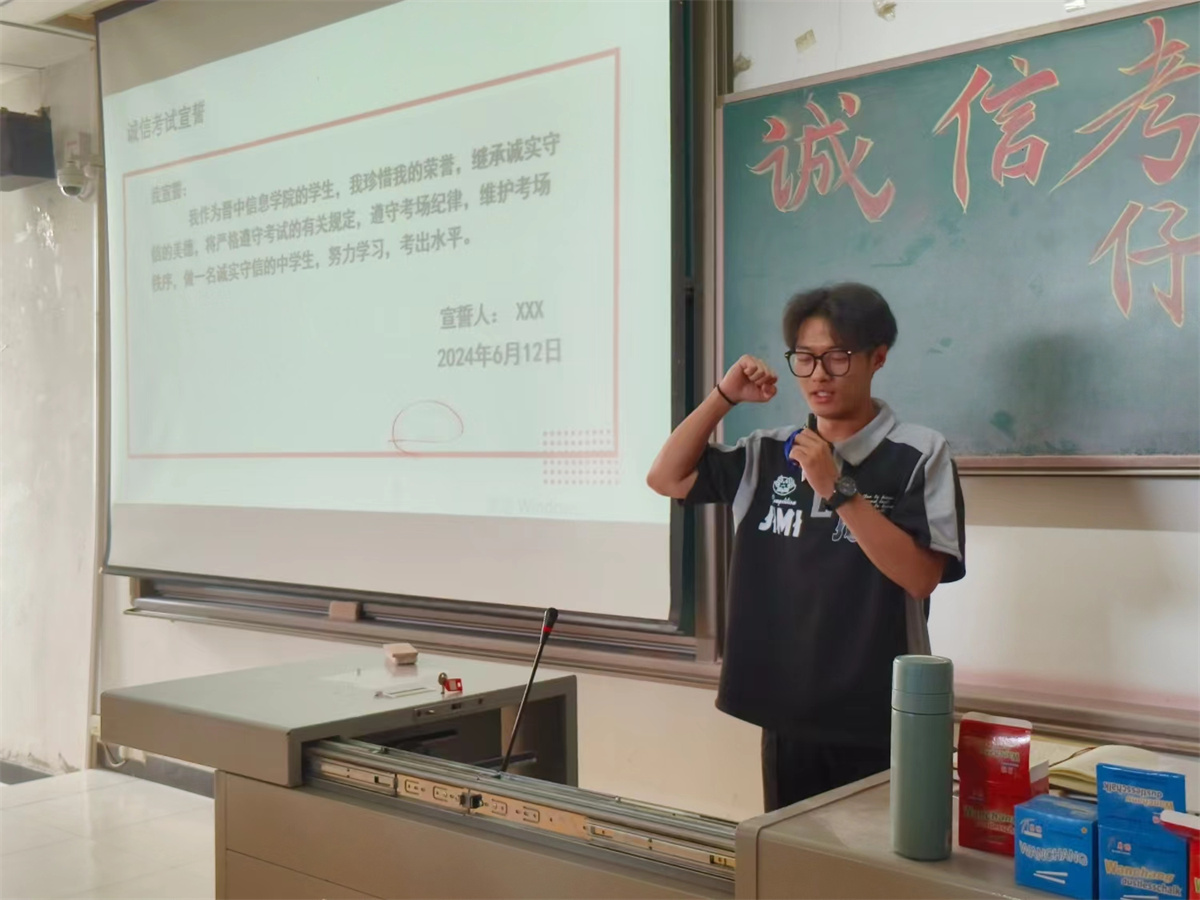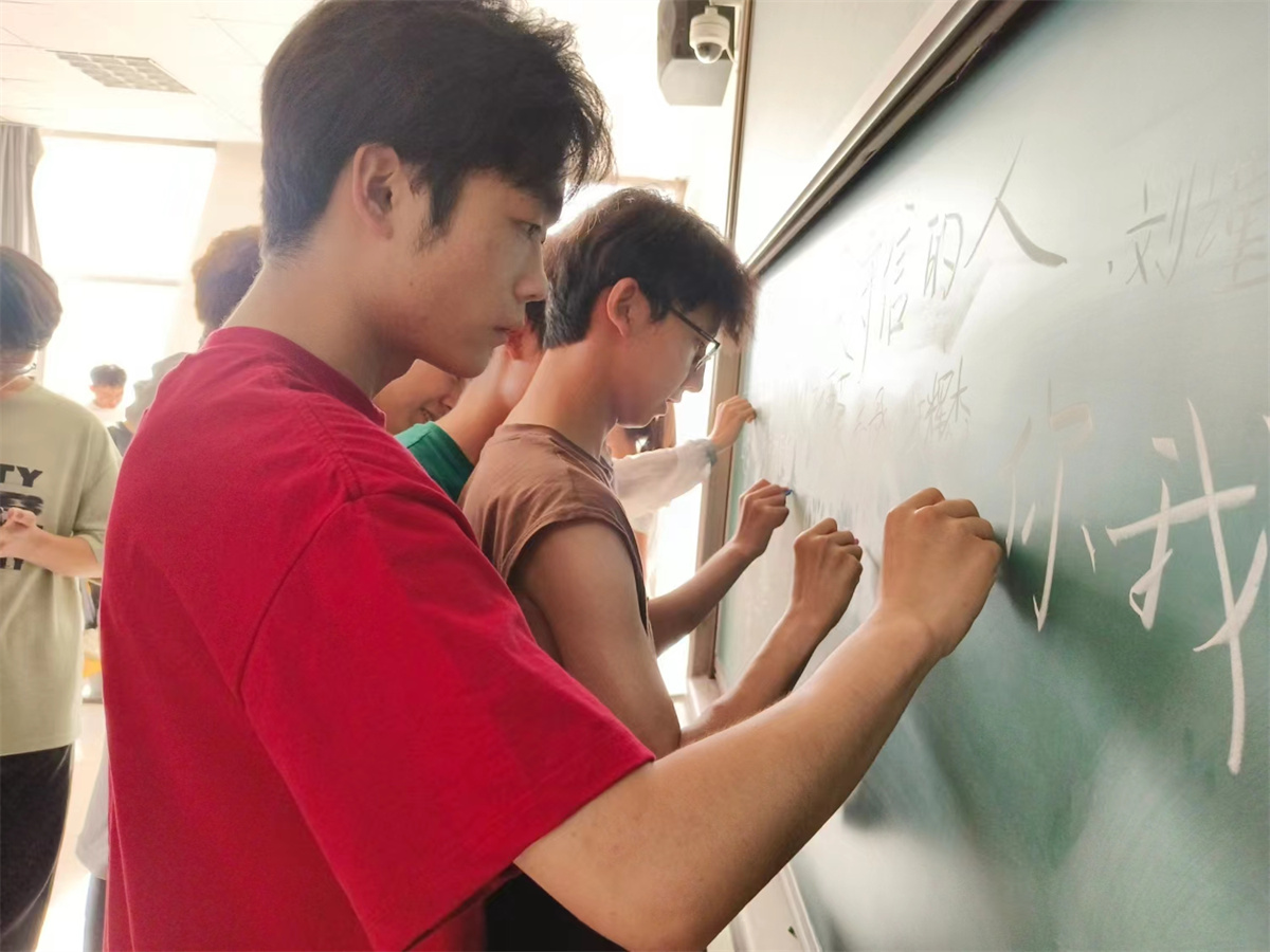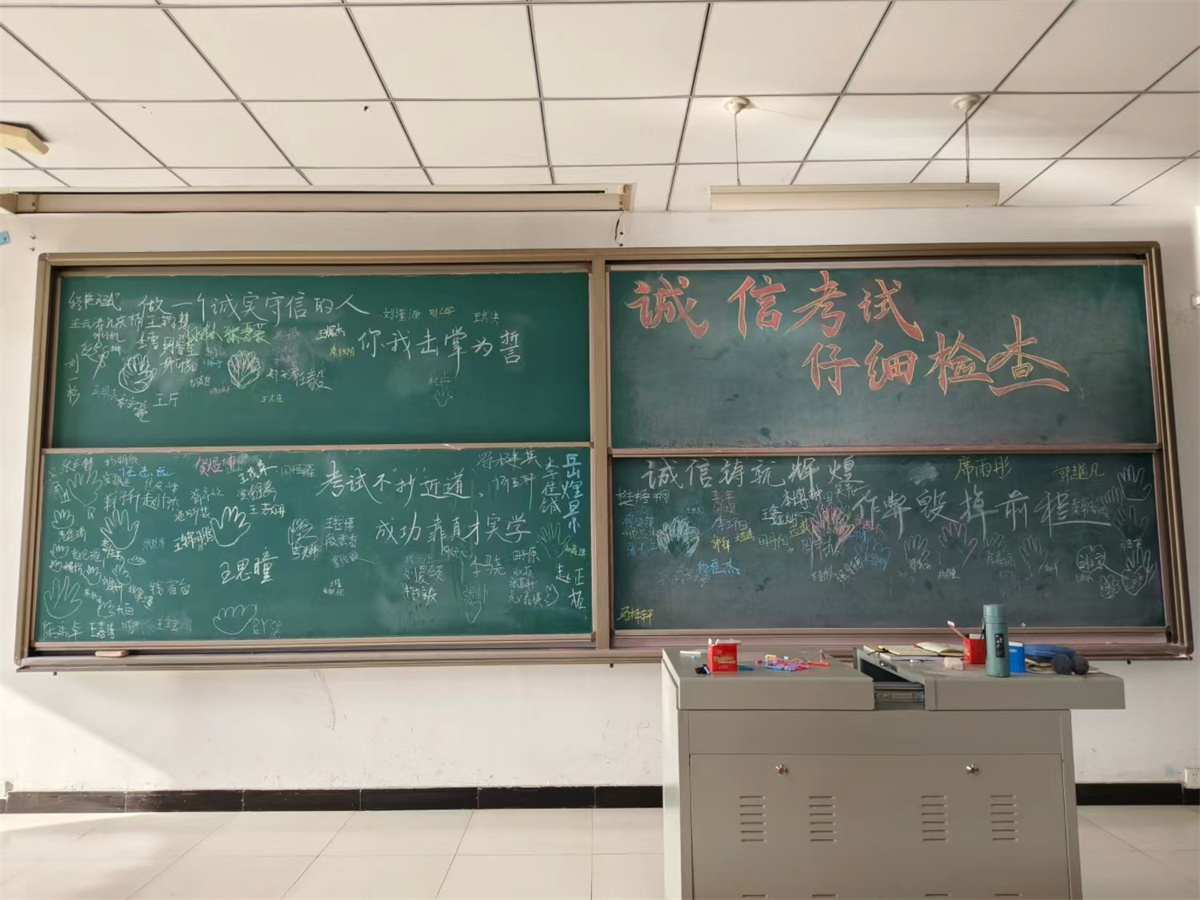 活动的最后,由杨程杰同学带领同学们进行诚信考试宣誓并在黑板上进行手绘涂鸦。随后,杜老师鼓励同学们要树立正确的考试观念,以诚信为本,以实力为基。他希望同学们能够珍惜大学时光,努力学习知识,培养自己的综合素质,以身作则,为营造一个良好的考试环境贡献自己的力量。