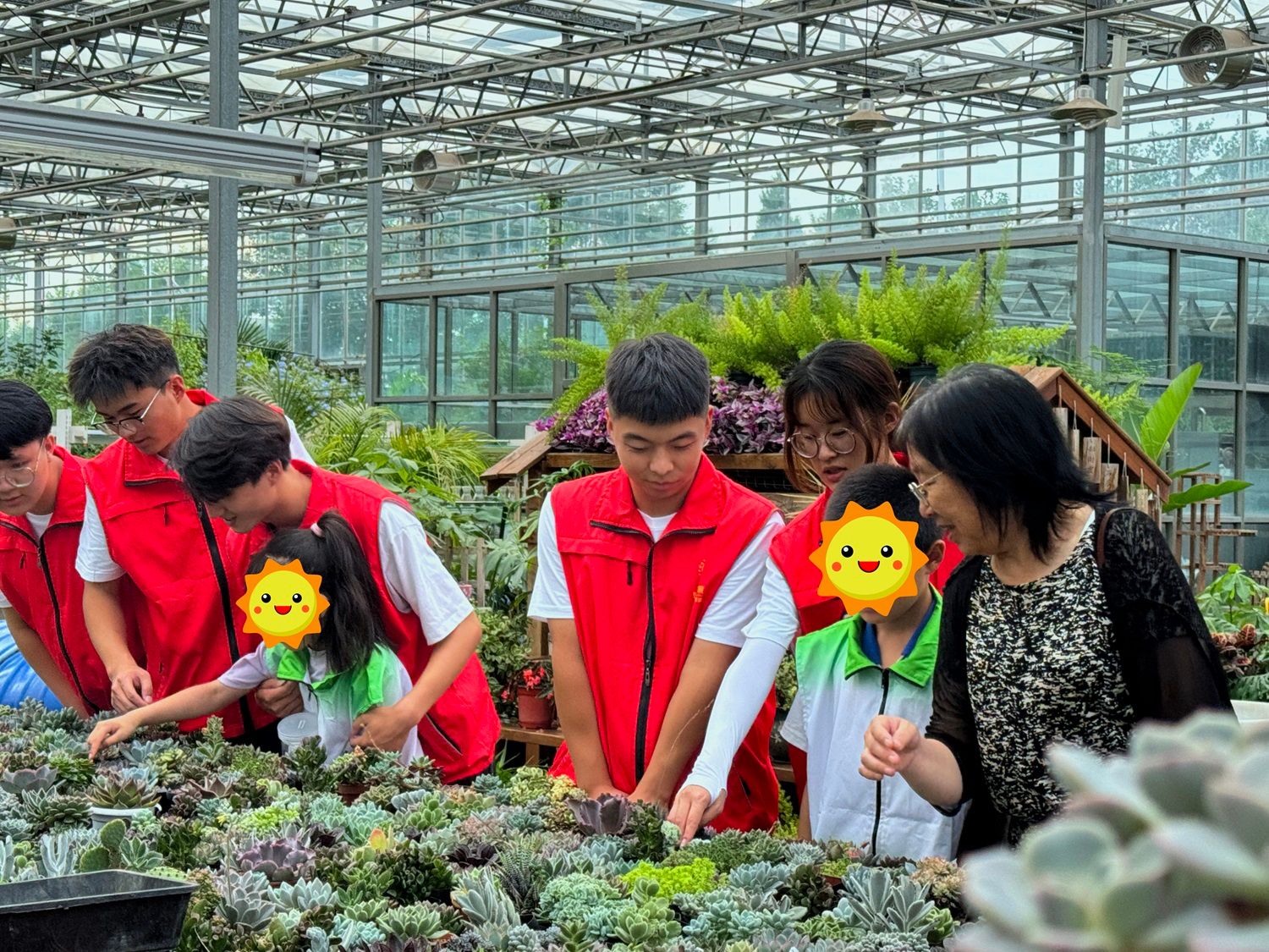 感受了农业机械以及农耕文明的发展史,志愿者与孩子们又走进了园艺花房,拓宽耕读教育的途径和场所,强化学生的理论教育和实践能力锻炼。管理人员热情地为大家介绍着他们悉心养护的“成果”,孩子们的眼中闪烁着好奇的目光,认真倾听,还不时地提出自己天真而有趣的问题。