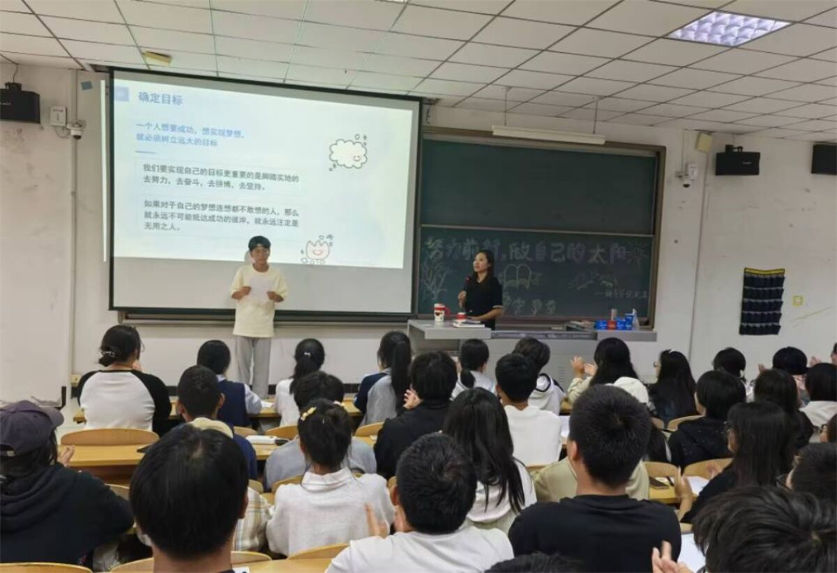 我们这一路走来,相信很多人都树立过大大小小的目标,但我们真的只是随便树立一个目标就行了吗?在这里,张敬美老师微笑着告诉大家一个人想要成功,想实现梦想,就必须树立一个远大的目标。其中,三个砌墙工人的故事让学生们茅塞顿开,知道了树立一个远大目标的重要性,它是前进的动力,是努力的方向。有了目标,学习不再迷茫,生活有了重心。这期间老师给时间让大家思考自己未来的目标,四年后想做什么工作,想成为什么样的人。大家认真思考,并且踊跃发言,想把自己的目标以及对自己的要求分享给大家,在台子上,他们身上被一束光照耀着,我们仿佛已经看见了未来少年的意气风发,赢得了属于自己的阵阵掌声。树立目标不是一时兴起,而是深思熟虑后的坚定选择。大学生们结合自己的兴趣爱好、专业特长和未来职业规划,制定出切实可行的目标。有的同学立志在学术领域有所建树,考上研究生,深入学习专业知识;有的同学渴望提升自己的自身能力,踊跃参与各项校园活动,积累经验。未来的路由我们自己决定。