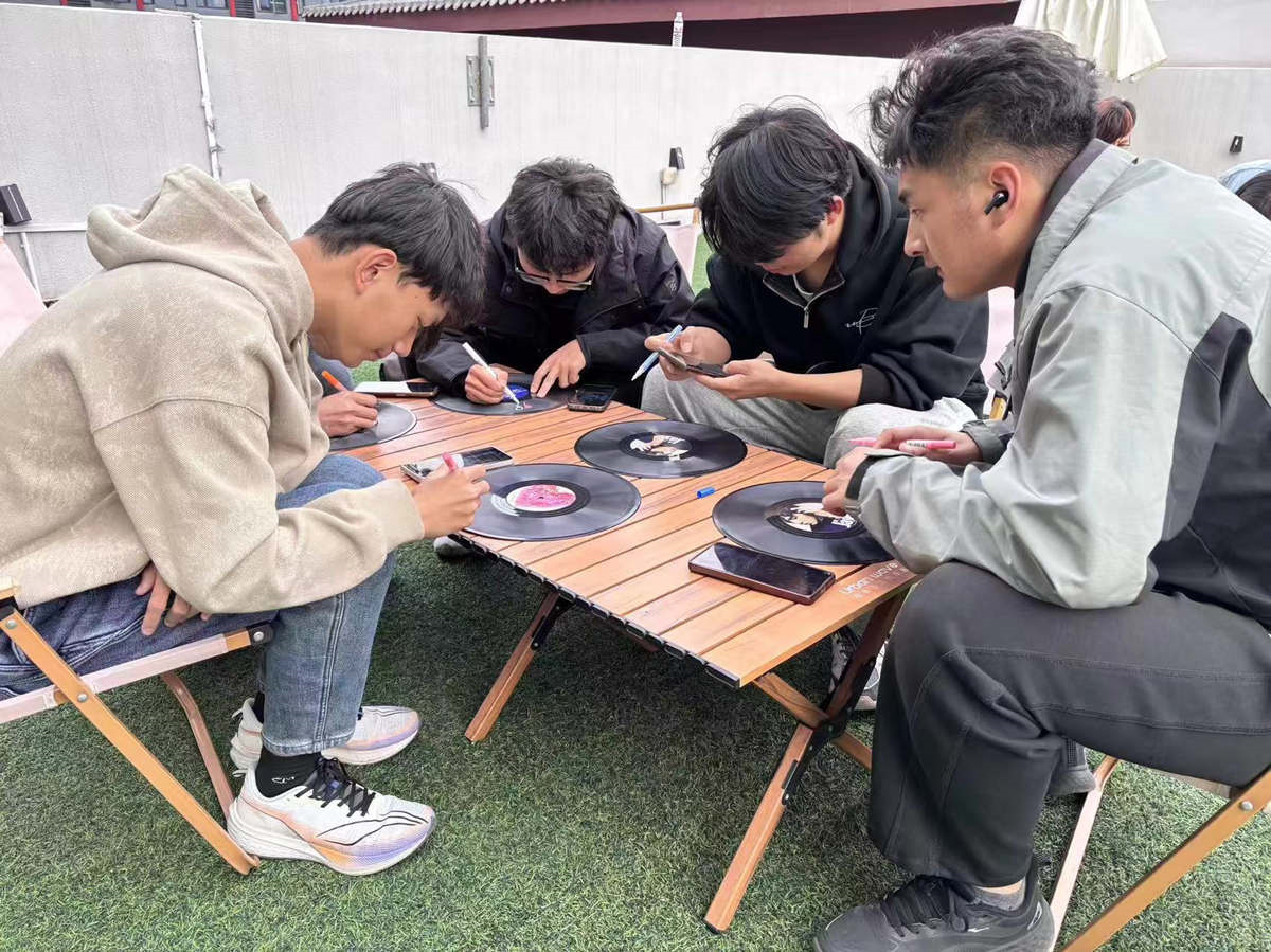 电子2301班于10月12日16:00,在毣·天台举办了一场越来“悦”爱,黑胶唱片涂鸦DIY活动,旨在激发同学们的创意和团队合作精神,同时提供一个放松和展示自我的平台。活动为同学们提供了一个自由发挥创意的平台。有的绘上了梦幻星空,有的则变成了色彩斑斓的海洋世界,每一幅作品都蕴含着同学们对生活的热爱与向往。在快节奏的现代生活中,学生们常常面临着各种压力。此次黑胶唱片DIY活动为同学们提供了一个释放压力、放松心情的平台。通过专注于创作,大家暂时忘却了学习的压力和烦恼,享受到了创作的乐趣和内心的平静。此次黑胶唱片DIY活动不仅是一次艺术创作的盛宴,更是一次团队合作和心灵交流的契机。通过活动,同学们不仅锻炼了自己的绘画技巧和创造力,还学会了如何与他人合作、如何面对困难和挑战。更重要的是,他们在这个过程中收获了友谊和快乐,感受到了集体的温暖和力量。